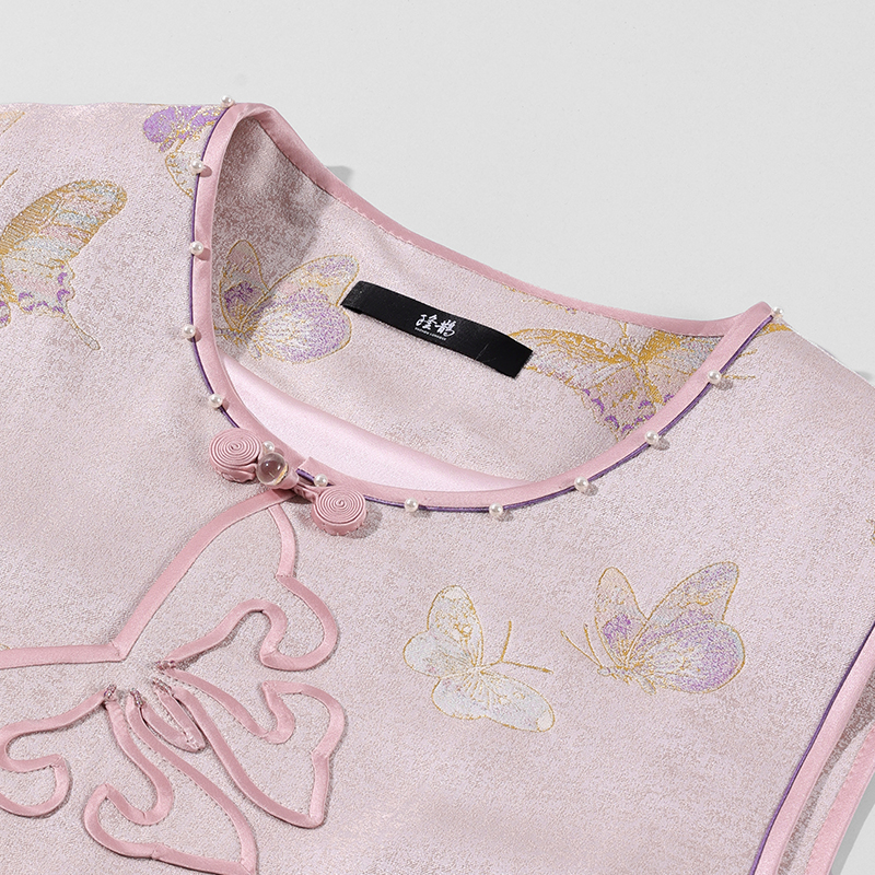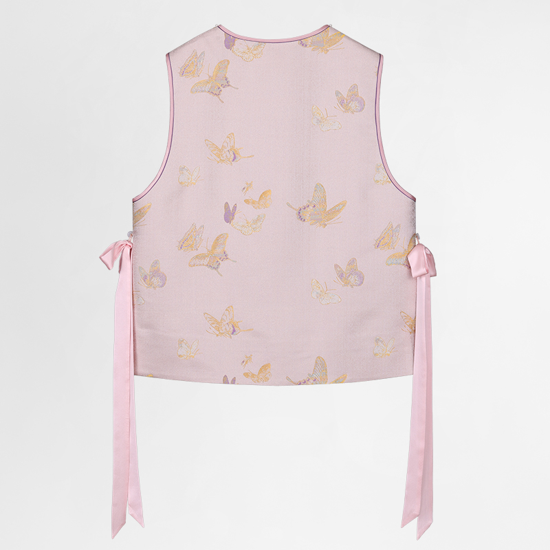 中国丝绸隆鹊【上久楷晴春蝶戏 彩粉金】宋锦洋气国风新中式马甲