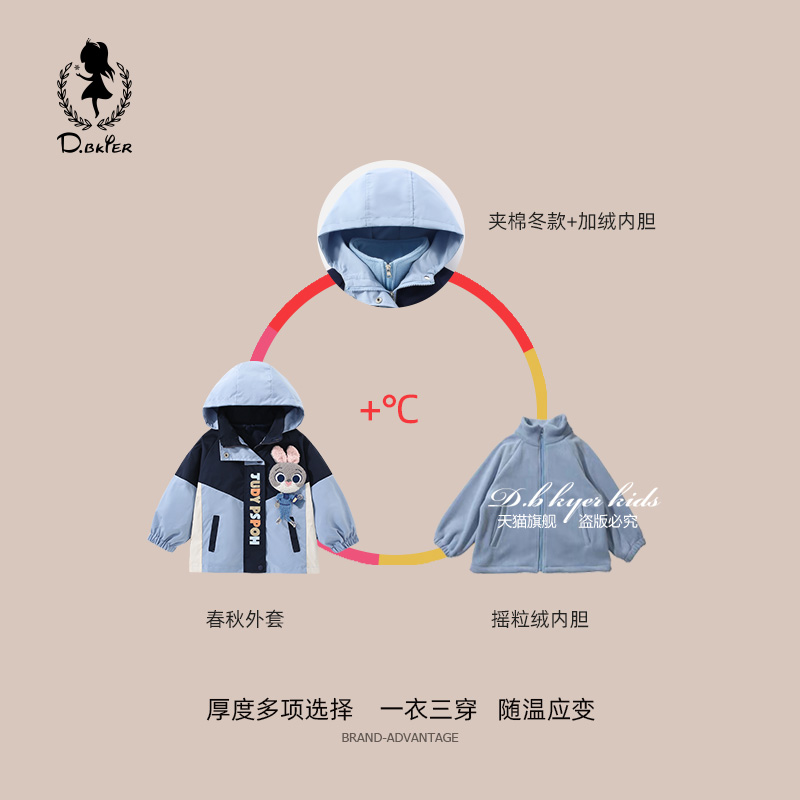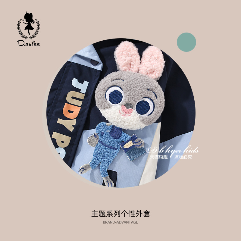 D.Bkyer女童外套秋冬风衣朱迪兔子警官儿童衣服加绒加厚冲锋衣