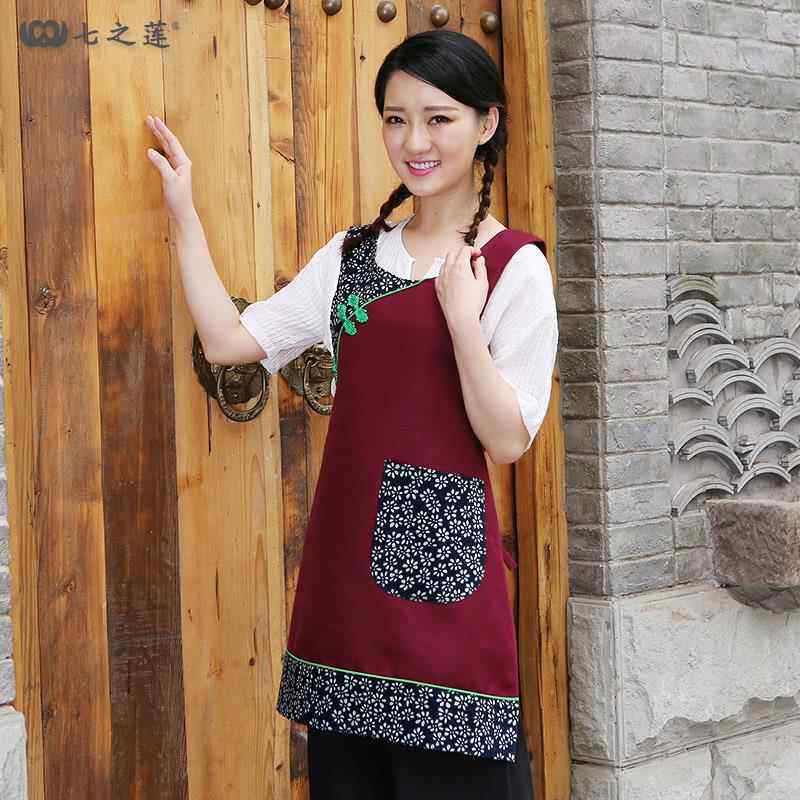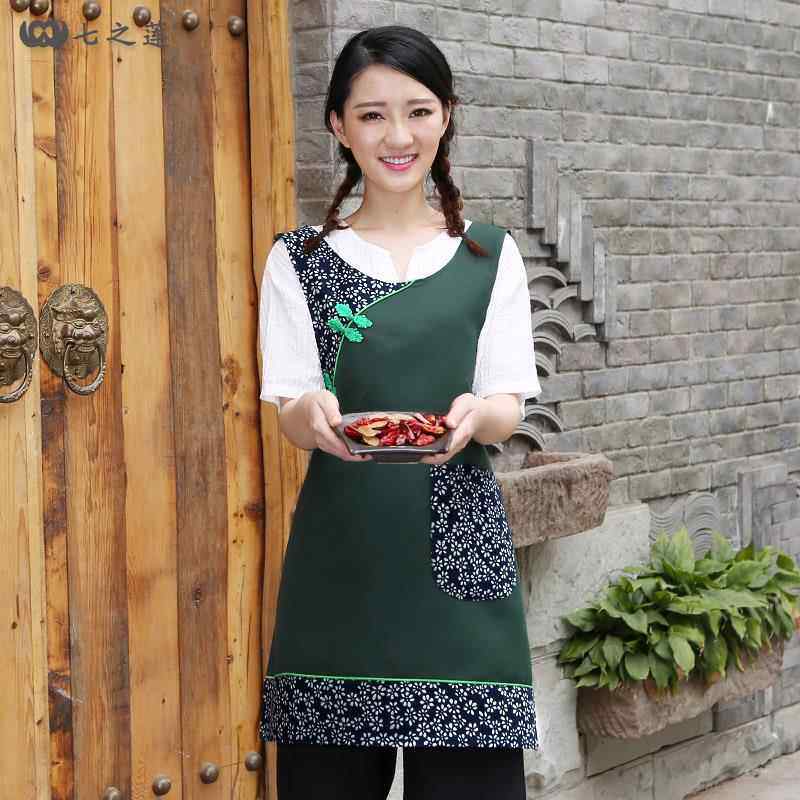 高档围裙时尚地方特色农家乐叶饭店工服中式餐厅茶店作服女装订制
