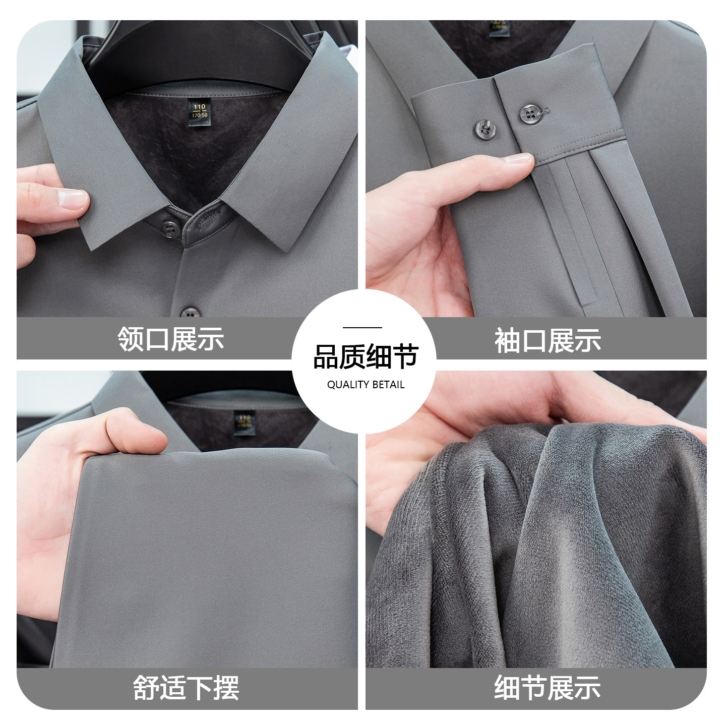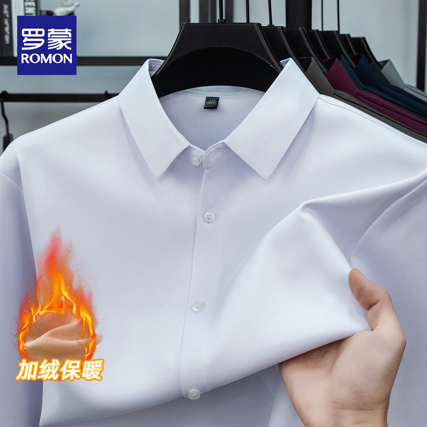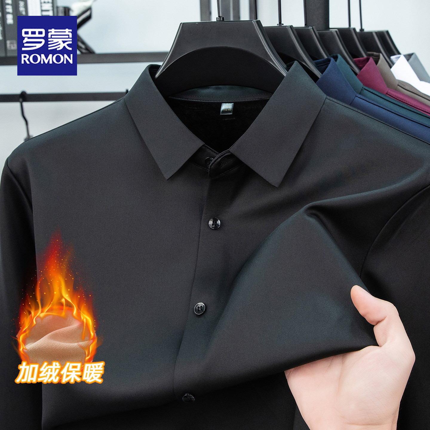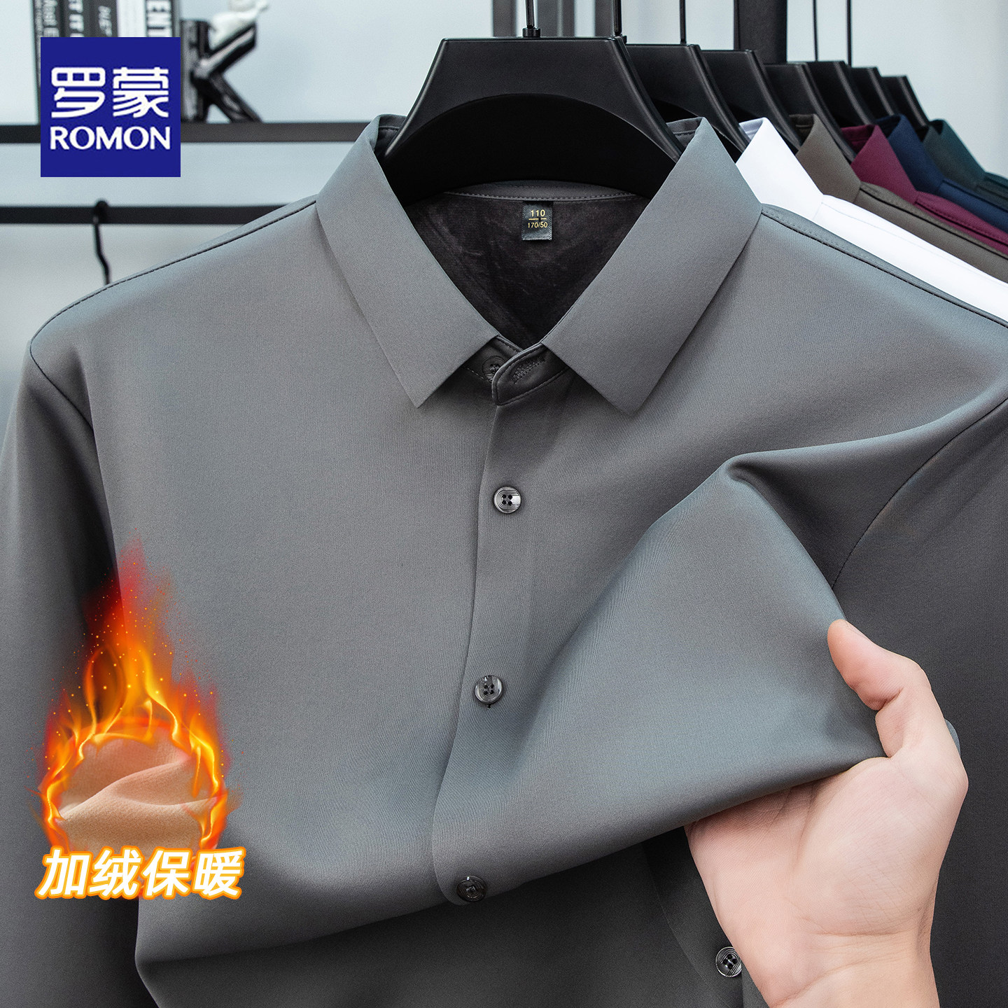 罗蒙2025冬季新款长袖衬衫男士加绒保暖翻领商务休闲厚款免烫衬衣