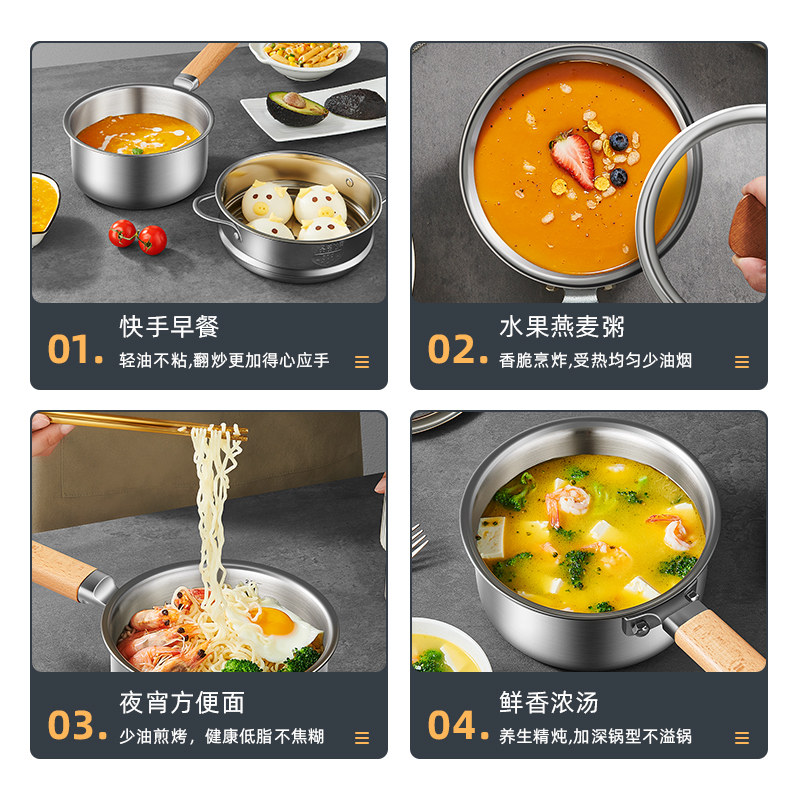 英国明爵无涂层加厚不锈钢宝宝专用辅食锅小奶锅家用蒸锅煎煮一体