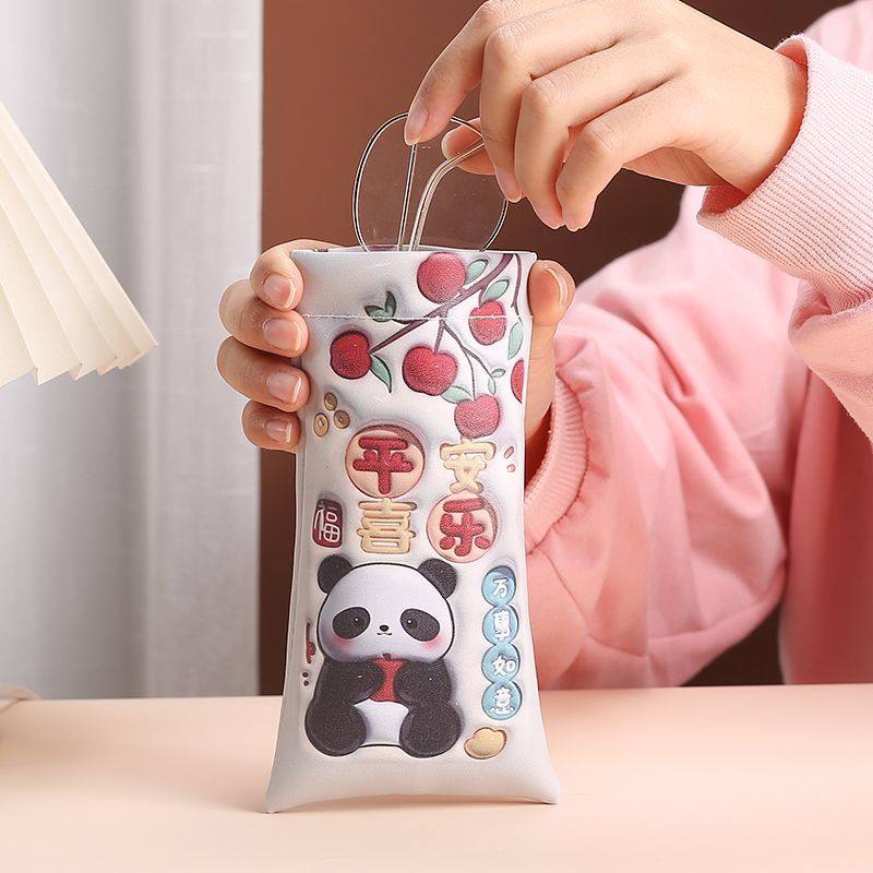可爱熊猫加厚眼镜袋抗压便携墨镜袋男女款太阳镜收纳包保护套布袋