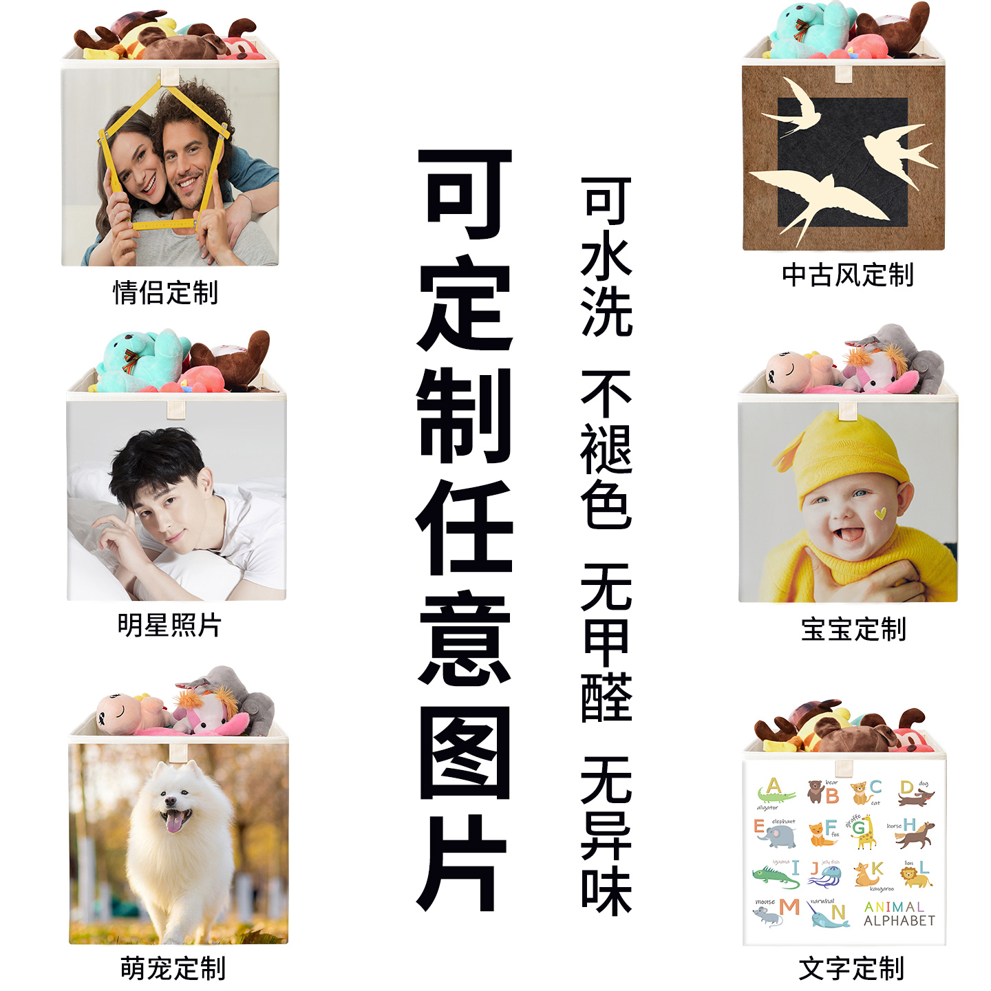 定制尺寸收纳箱布艺儿童家用可水洗卡通教室收纳筐班级书柜收纳盒