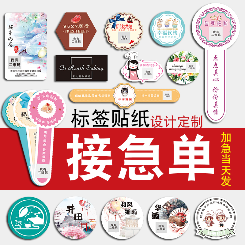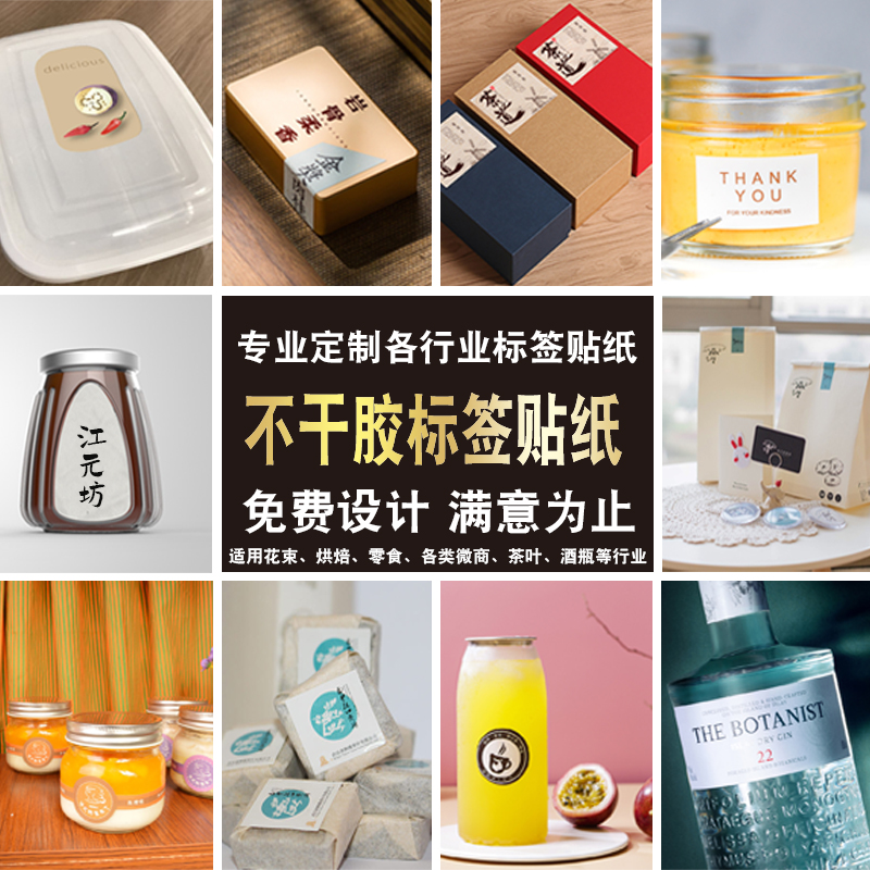 不干胶广告贴纸定制二维码logo标签透明贴蛋糕包装外卖封口贴防水订制甜品奶茶圆点钵仔糕贴商标合格证定做