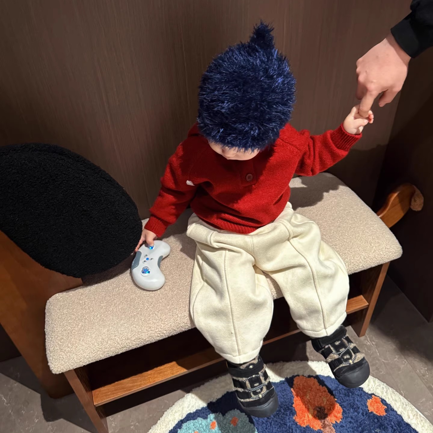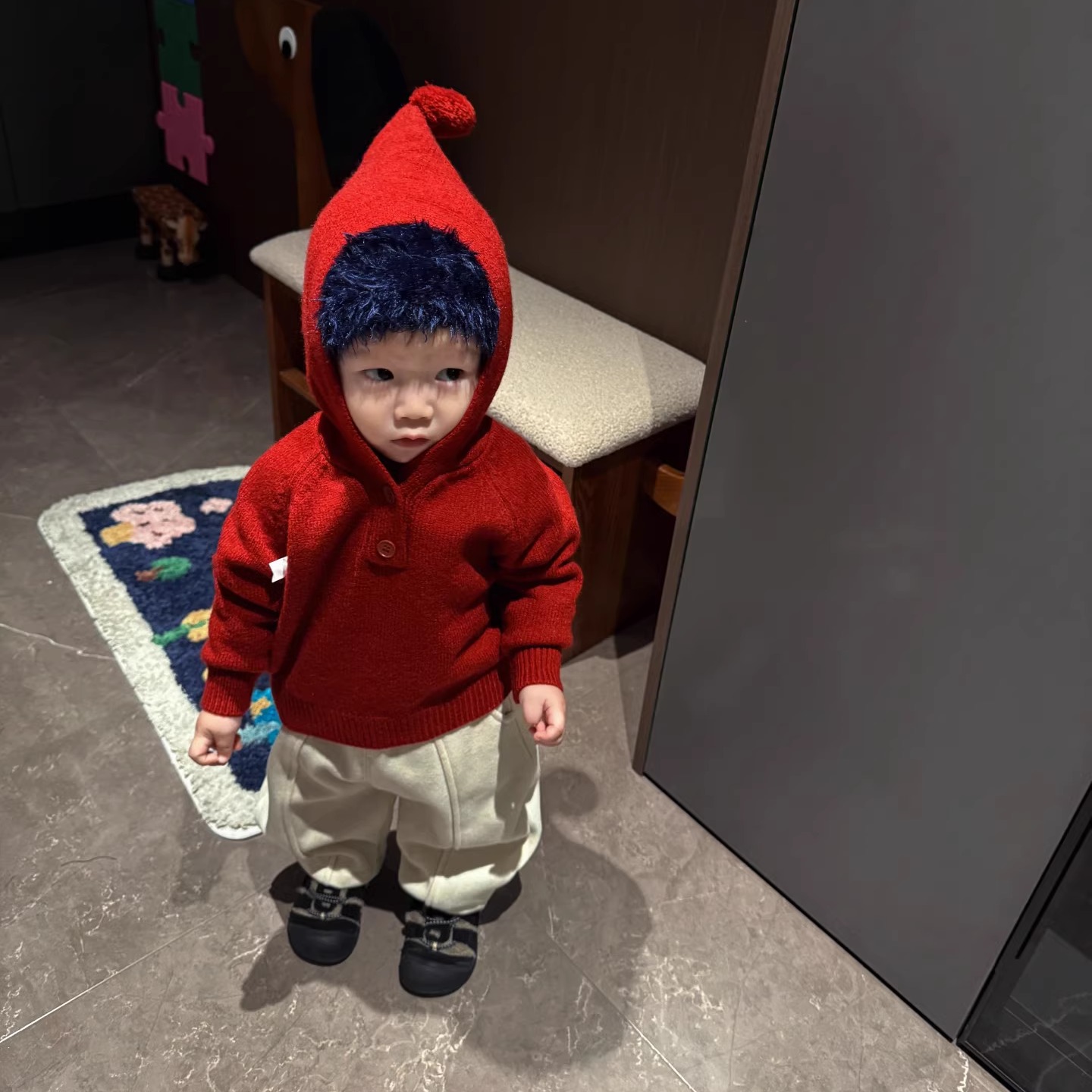 婴儿秋冬新款套装男女宝宝纯色百搭连帽针织衫加绒休闲卫裤两件套