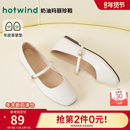 热风平底浅口单鞋女鞋2025年秋季新款女士方头晚晚风小皮鞋配裙子