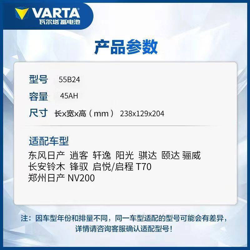 瓦尔塔蓄电池55B24L适配经典轩逸骐达思域新阳光面包车电瓶6-QW45