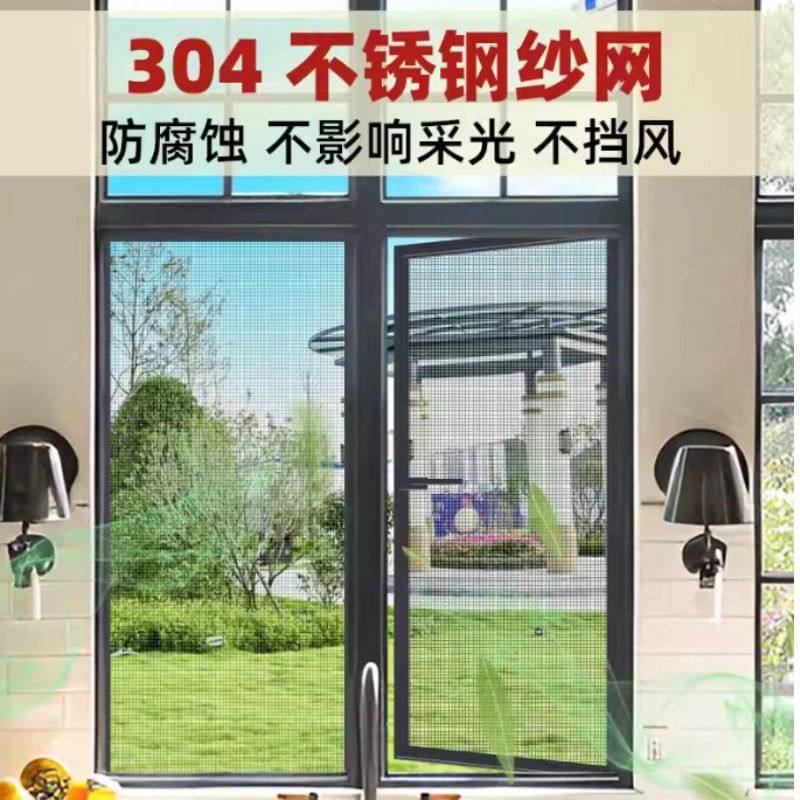 304L不锈钢纱窗网自装家用窗户推拉式防蚊窗纱钢丝网纱网阳台防鼠