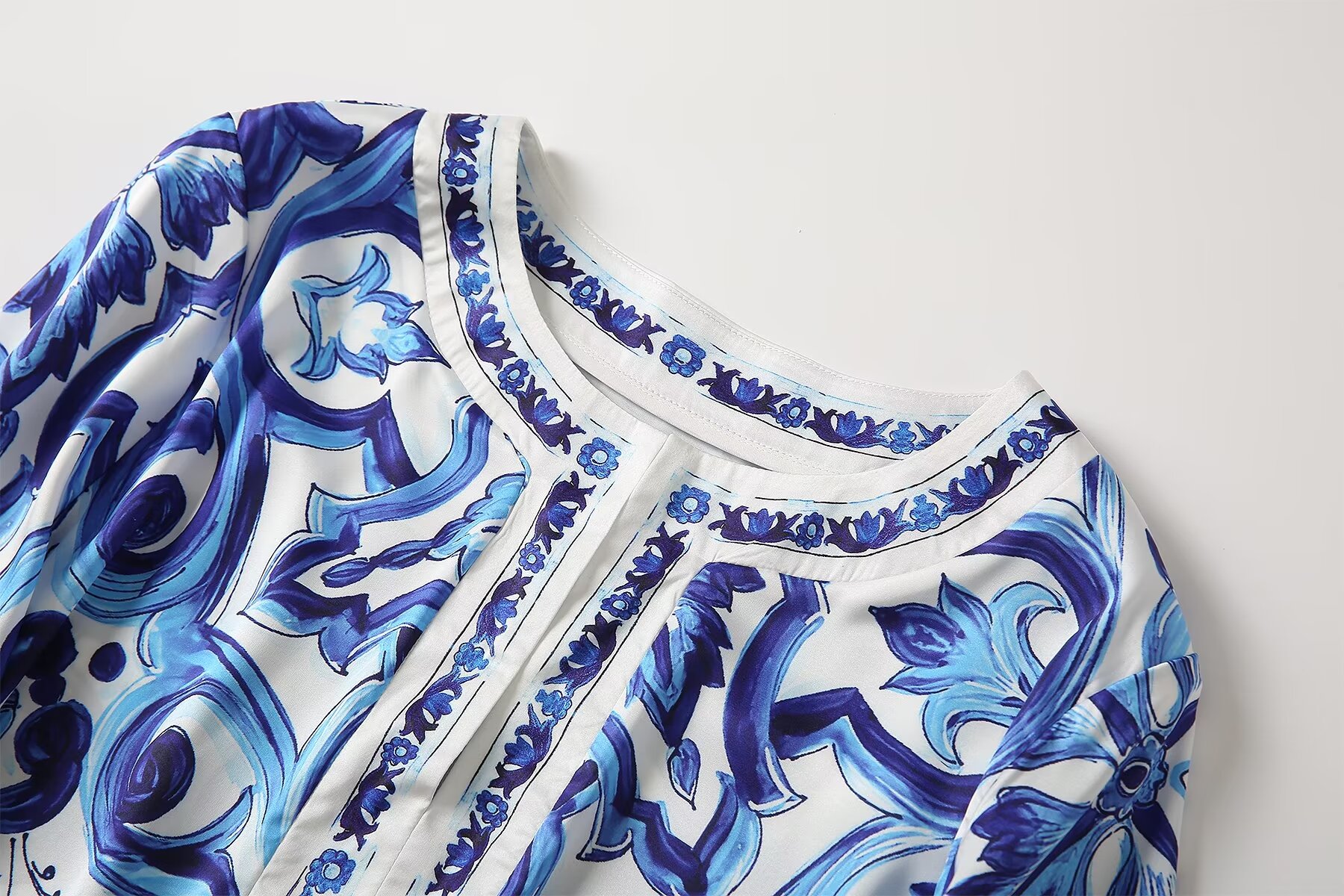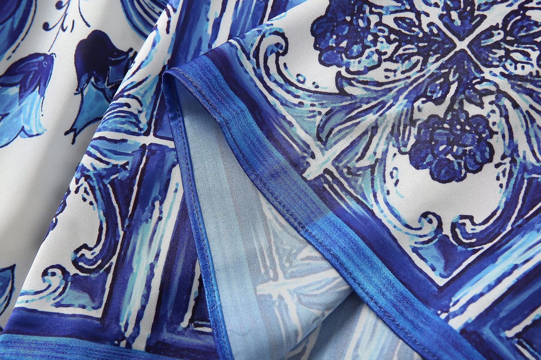 欧货女装春秋新款轻奢高级感青花瓷大摆长裙大码宽松度假风连衣裙