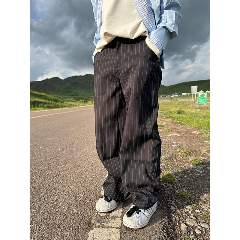 NECOYEP 美式复古条纹垂感弯刀休闲裤男女宽松百搭潮流阔腿拖地裤