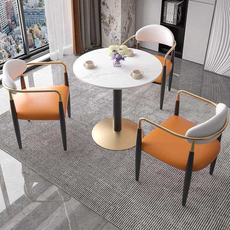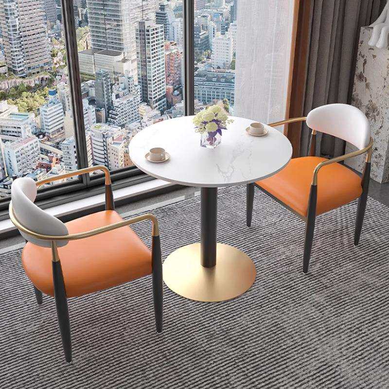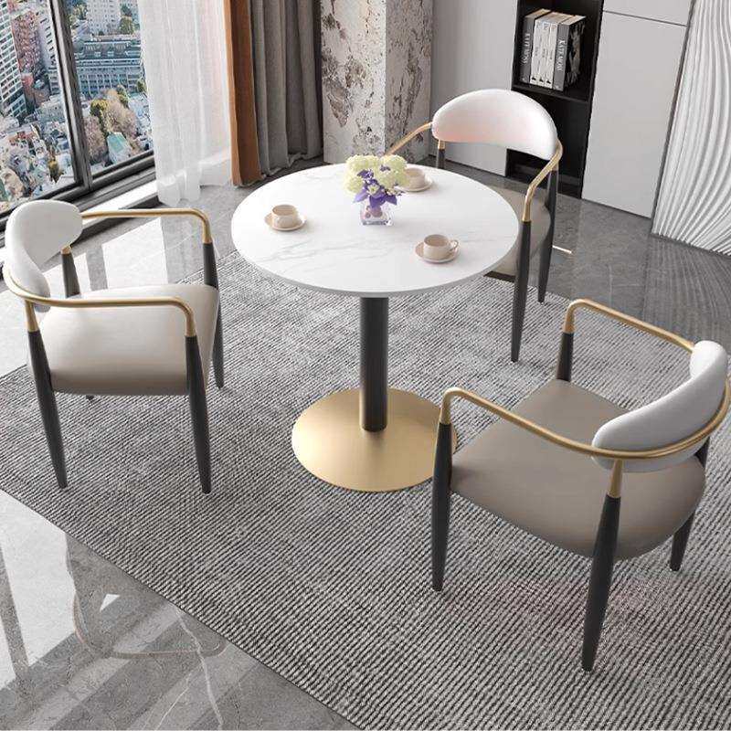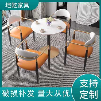 简约岩板会客洽谈接待小圆桌组合售楼处休息区成套餐桌椅家具