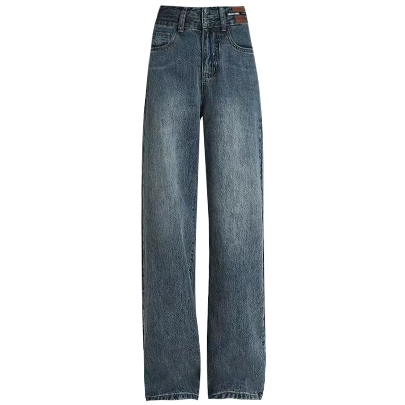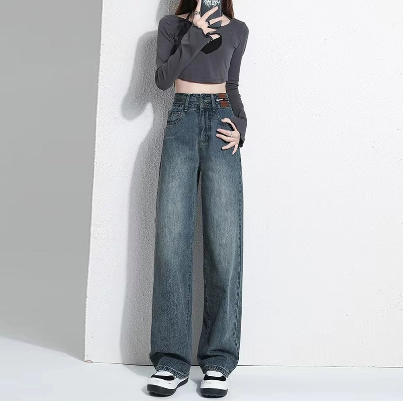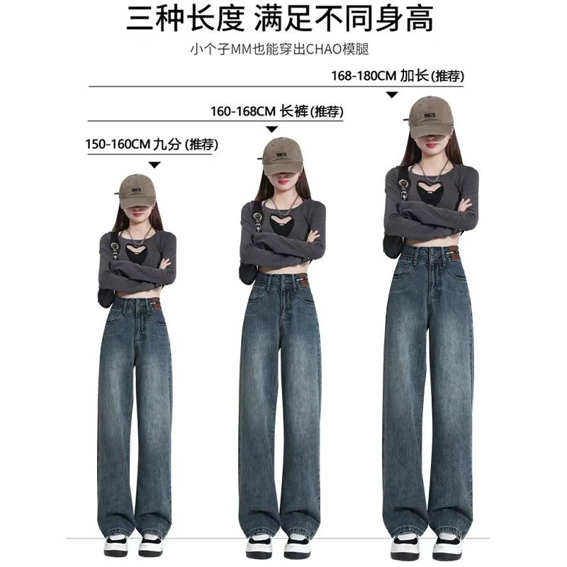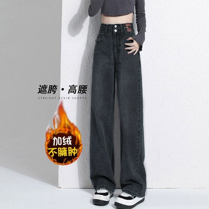 阔腿牛仔裤女2023年新款加绒春秋高腰小个子显瘦宽松拖地直筒裤冬