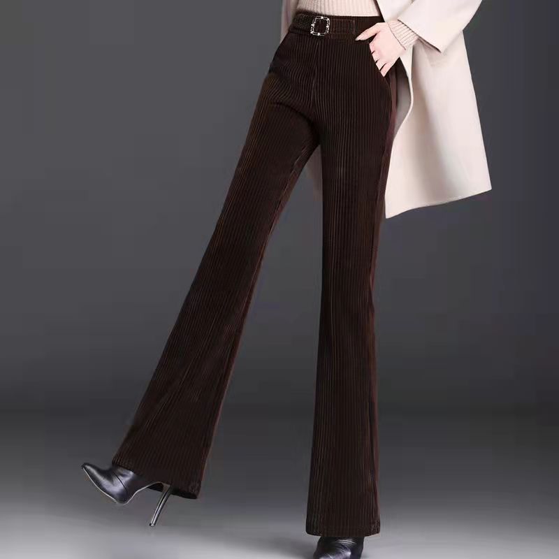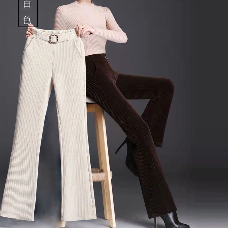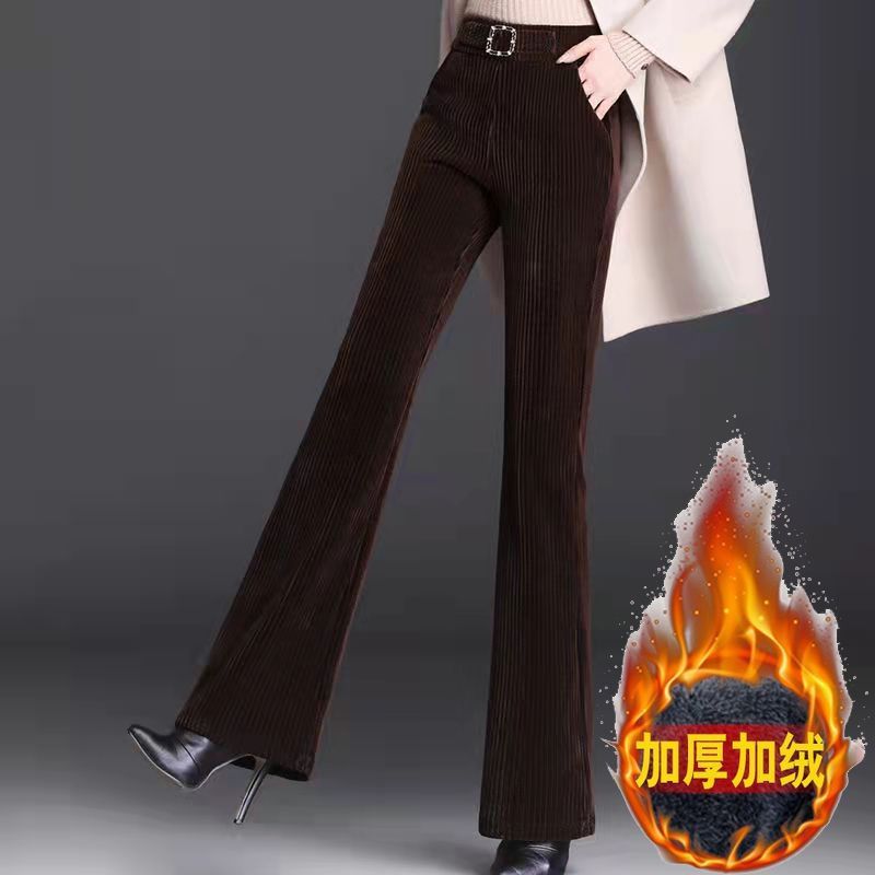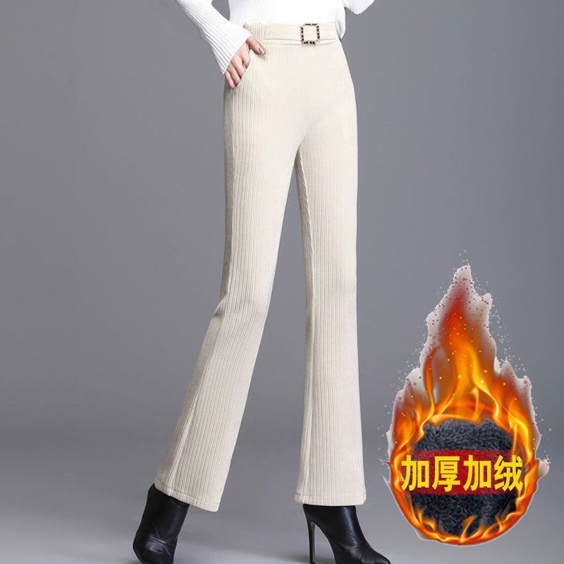 小个子微喇裤女裤秋冬新款加绒加厚雪尼尔高腰直筒阔腿休闲裤子潮