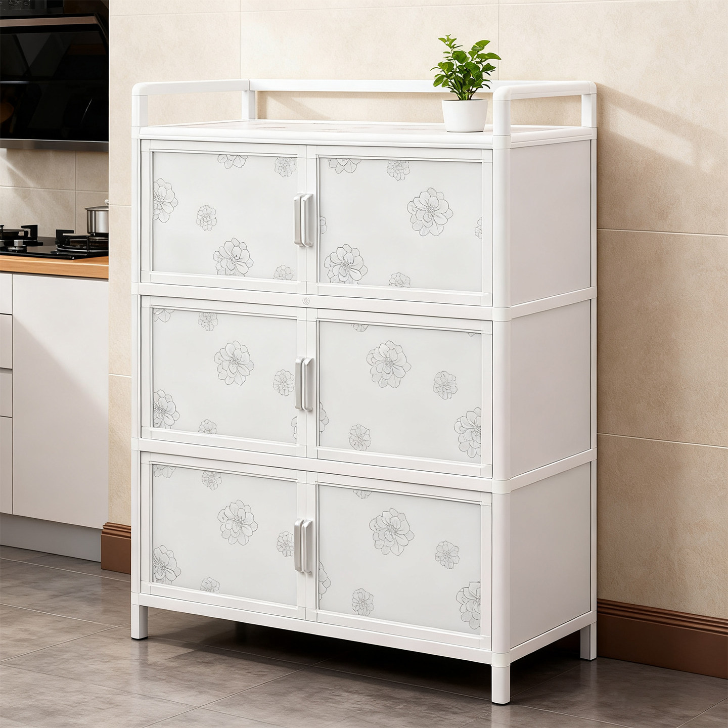 铝合金碗柜家用简易橱柜厨房储物柜经济型不锈钢碗柜餐边柜茶水柜