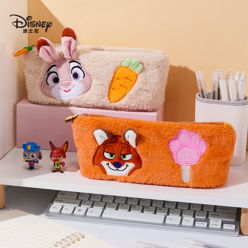 迪士尼疯狂动物城毛绒笔袋朱迪女生ins风可爱女孩文具收纳袋高颜值铅笔文具袋学生大容量学习用品铅笔袋尼克