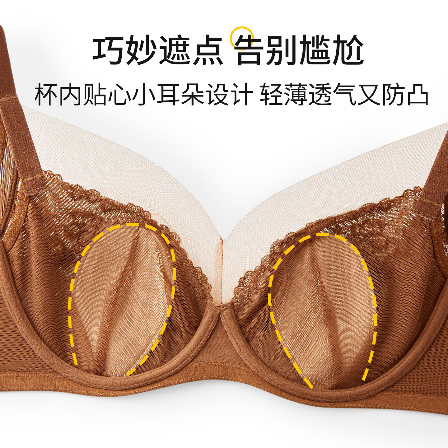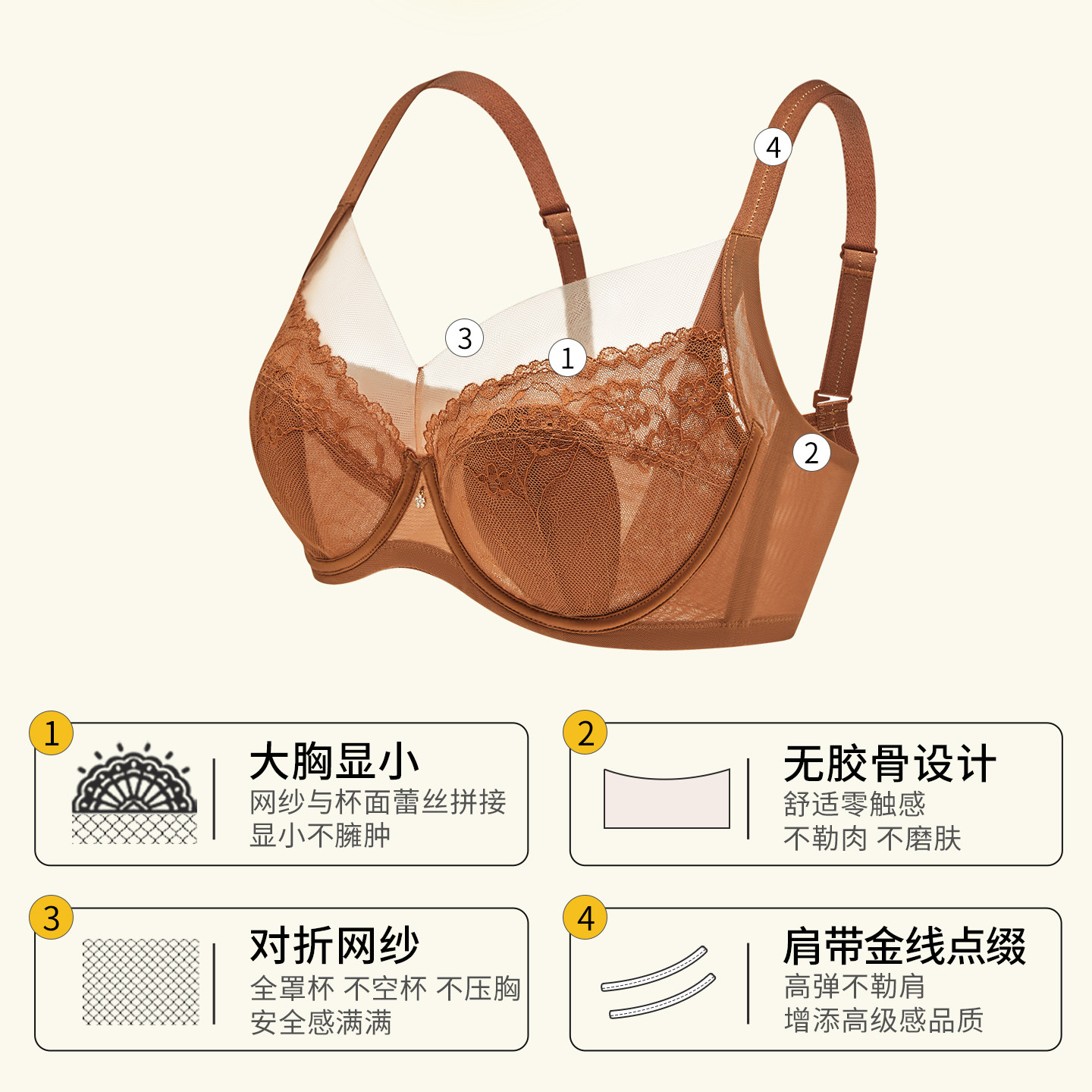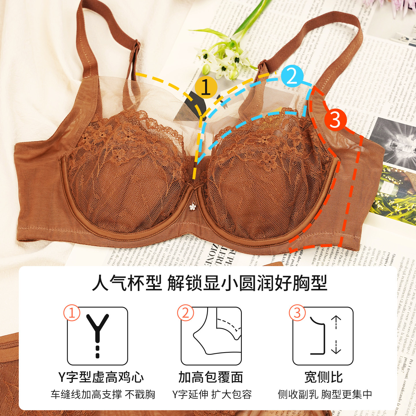 桑扶兰大胸显小内衣水晶杯小Y领防凸点防下垂性感蕾丝全罩杯文胸