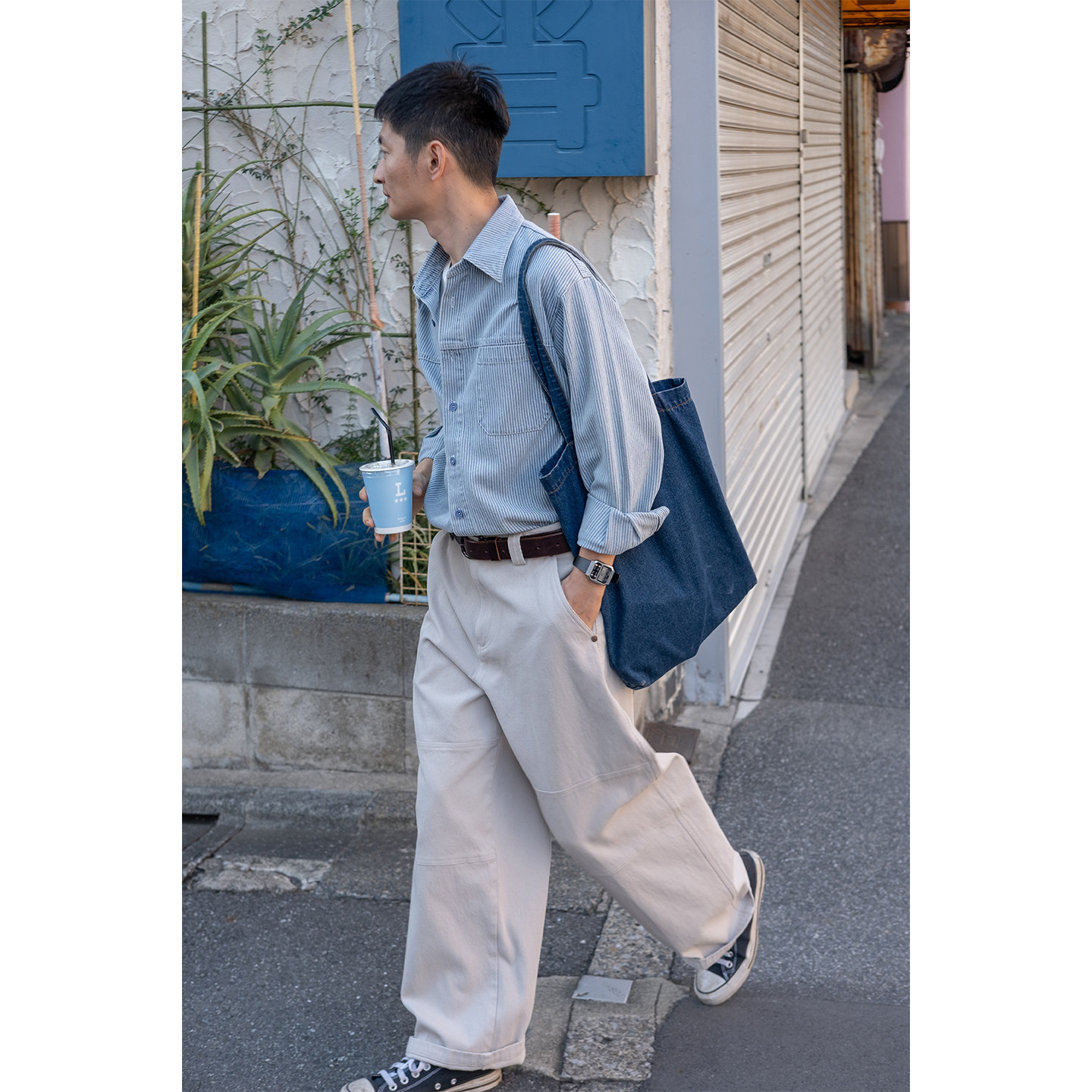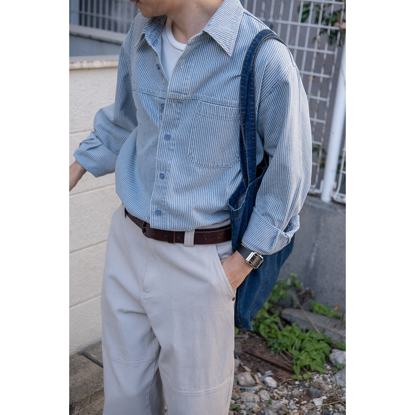 【天空之城】几立 蓝白相间的水洗复古条纹牛仔长袖衬衫