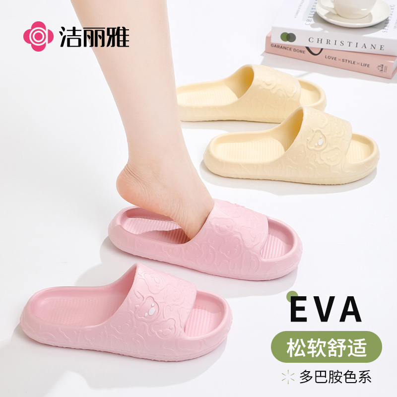 洁丽雅清仓拖鞋可爱小熊家用EVA防滑防臭夏季室内男洗澡凉拖鞋