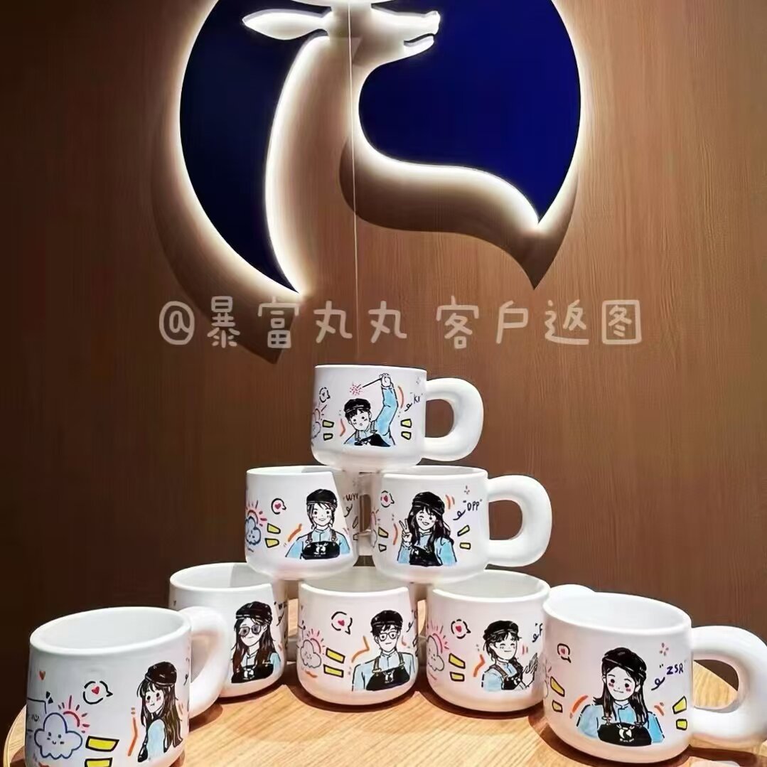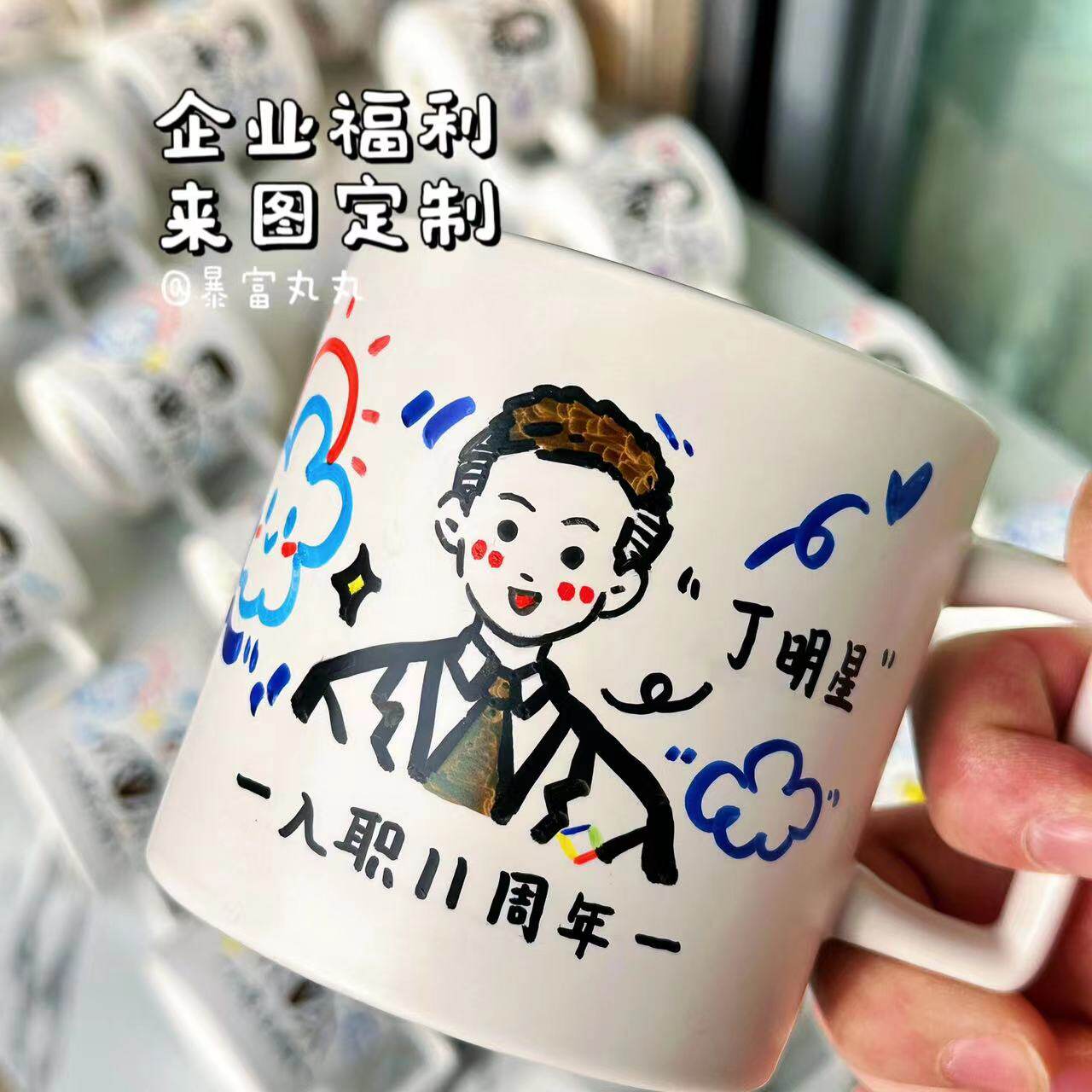 纯手绘diy杯子定制人物照片马克杯公司员工入职周年纪念礼品礼物