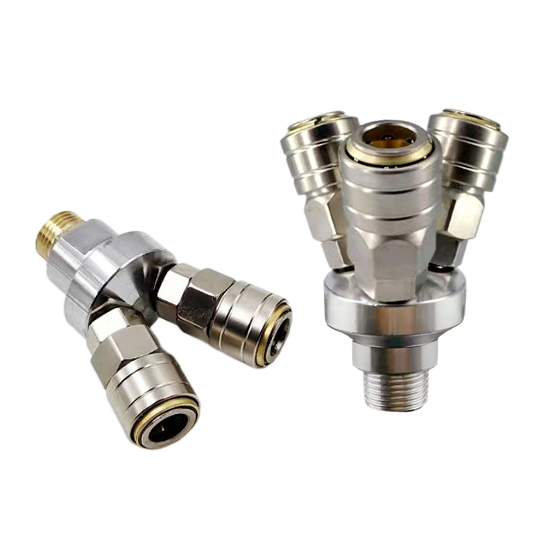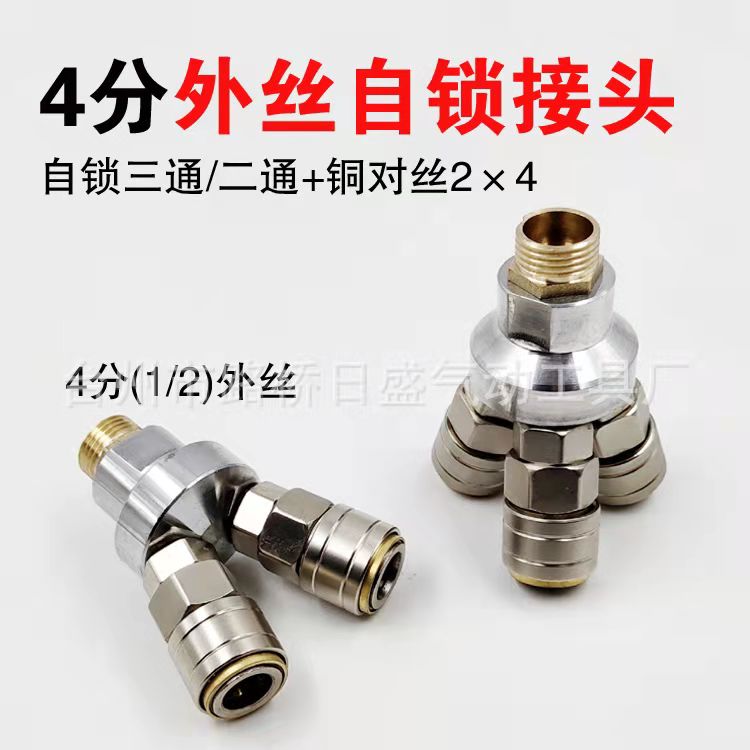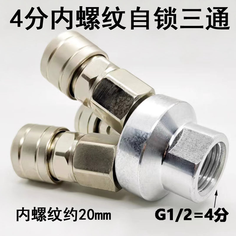 C式气动快速接头4分外丝自锁圆二通1/2内螺纹圆三通二叉圆三叉SMY