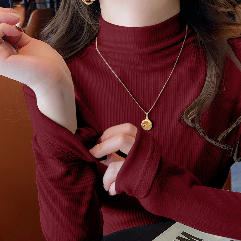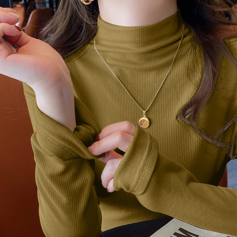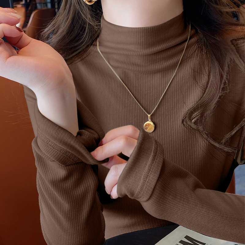 莫代尔加绒保暖长袖t恤女薄绒内搭打底衫冬季新款修身半高领上衣
