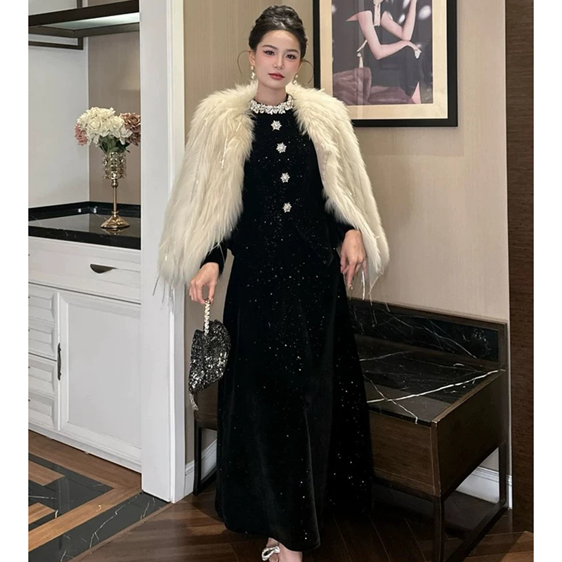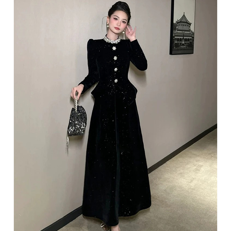 高端精致亮闪闪名媛连衣裙女新款年会晚宴重要场合高级感礼服长裙