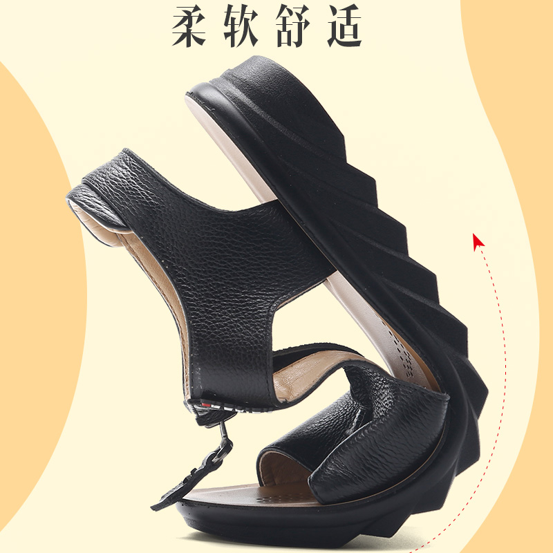 织丽妈妈凉鞋女夏季平底中老年女鞋真皮大码拉链软底中年鞋子43码
