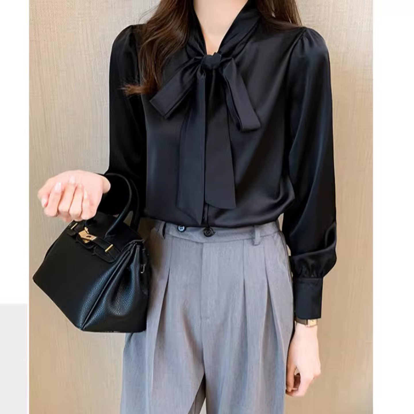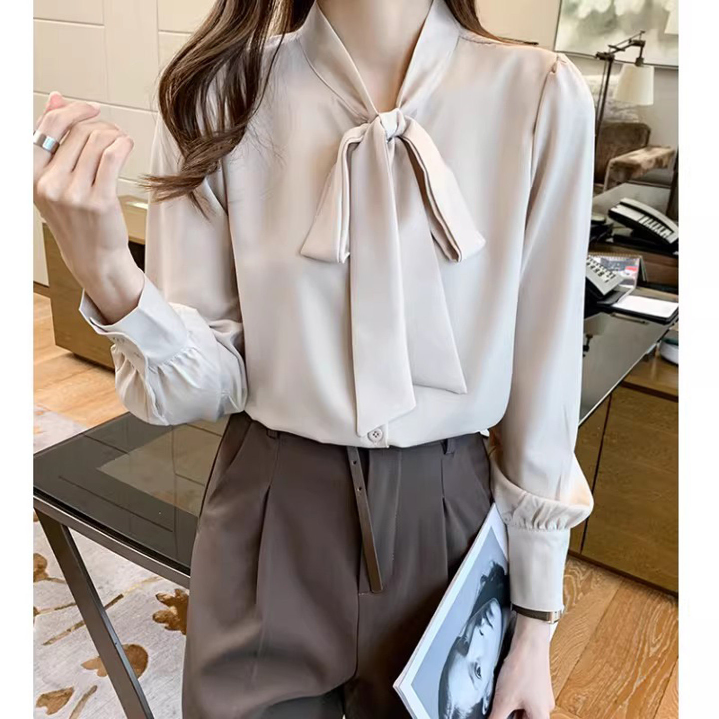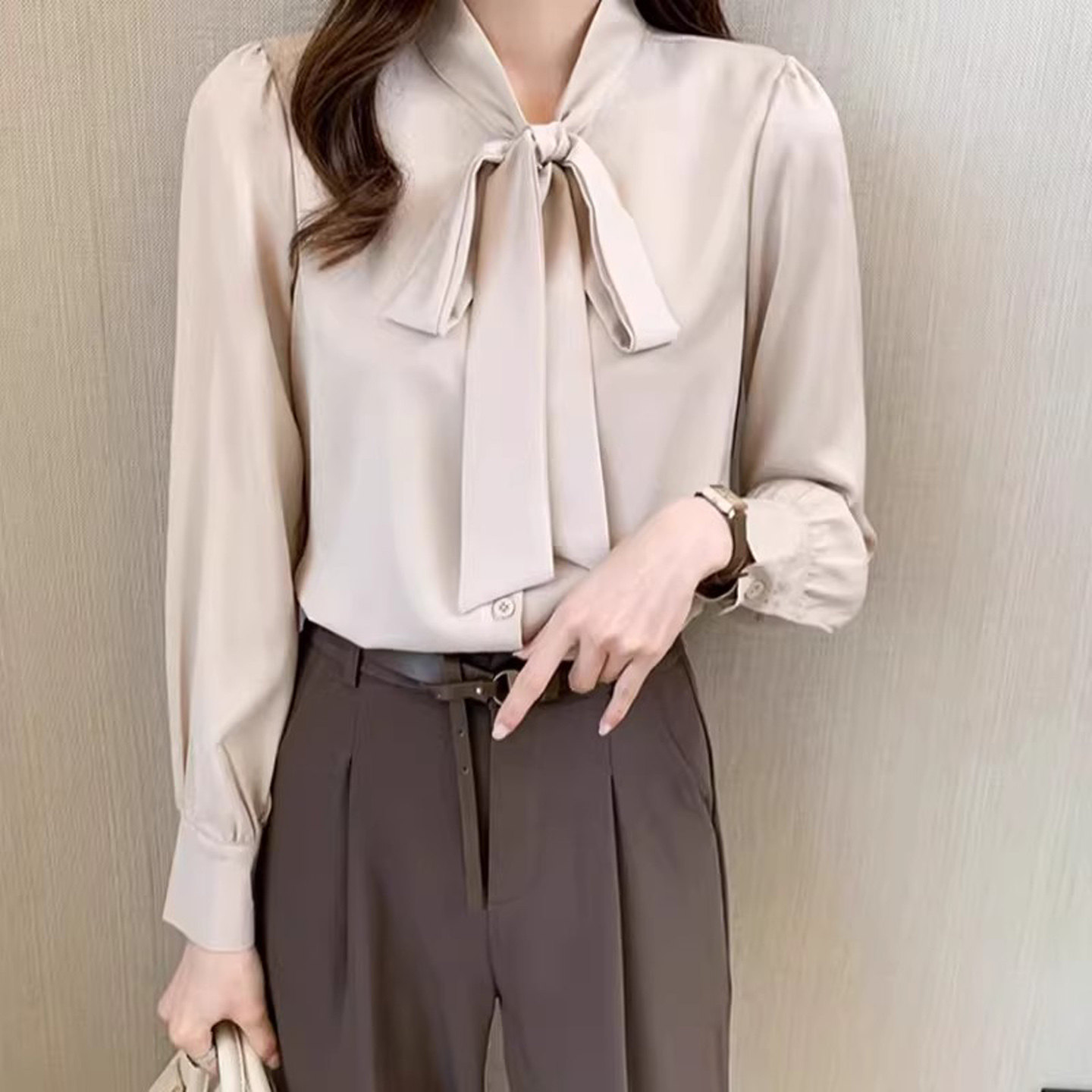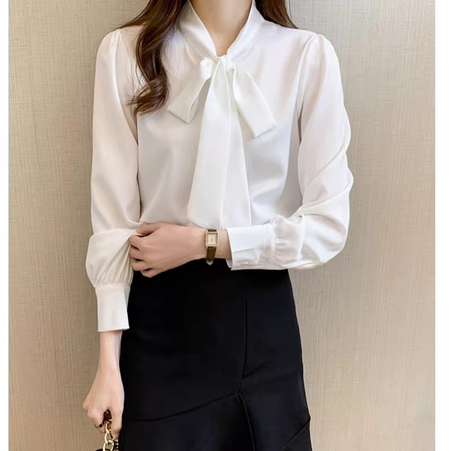 白衬衫女2026春装新款教师面试穿职业正装蝴蝶结衬衣内搭长袖上衣