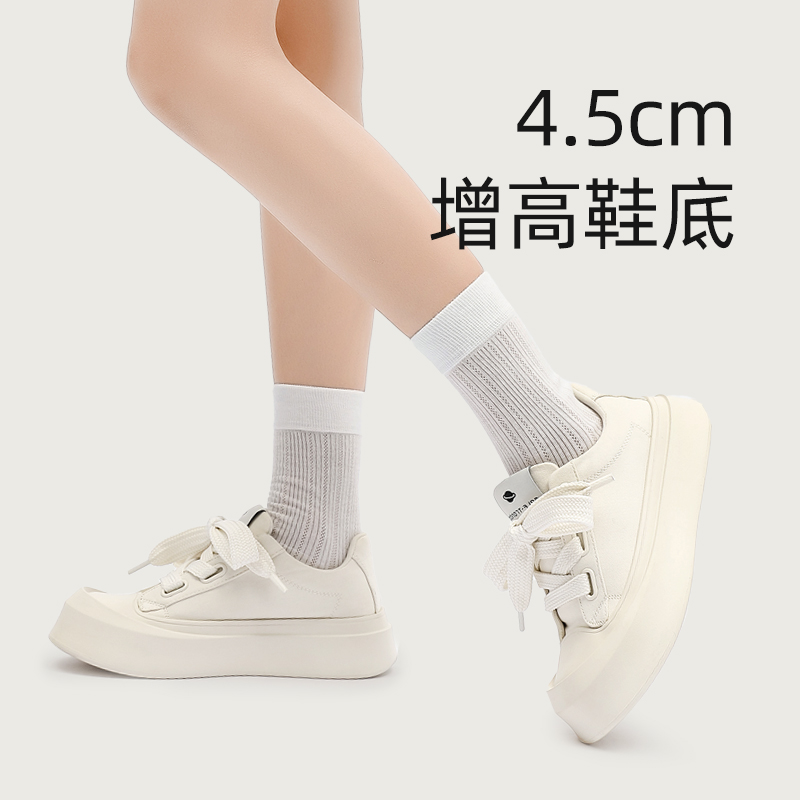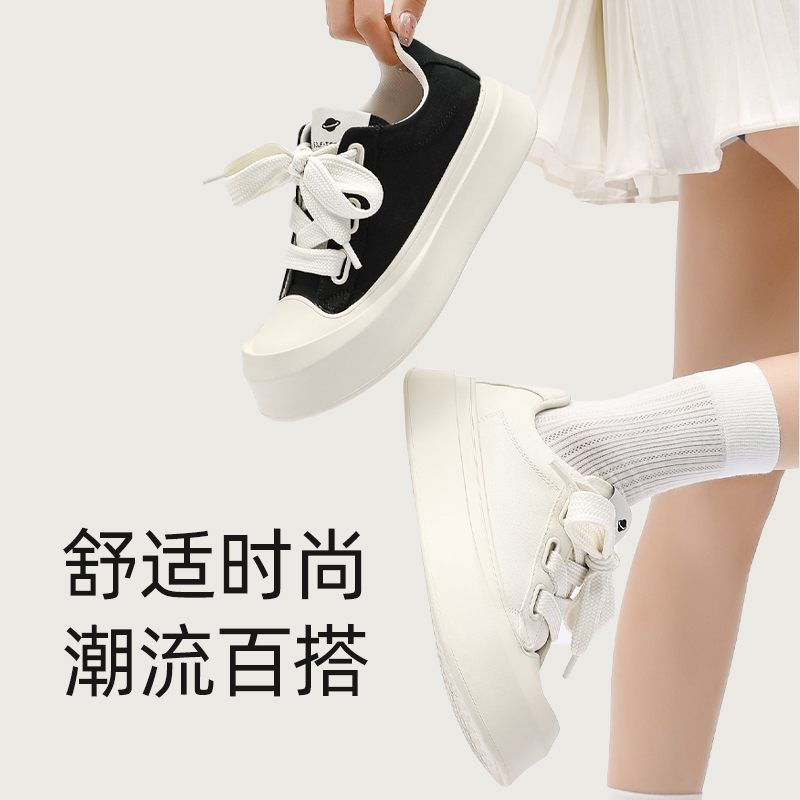 Self-Trender帆布鞋女2024夏季百搭新款平厚底小白鞋情侣增高休闲