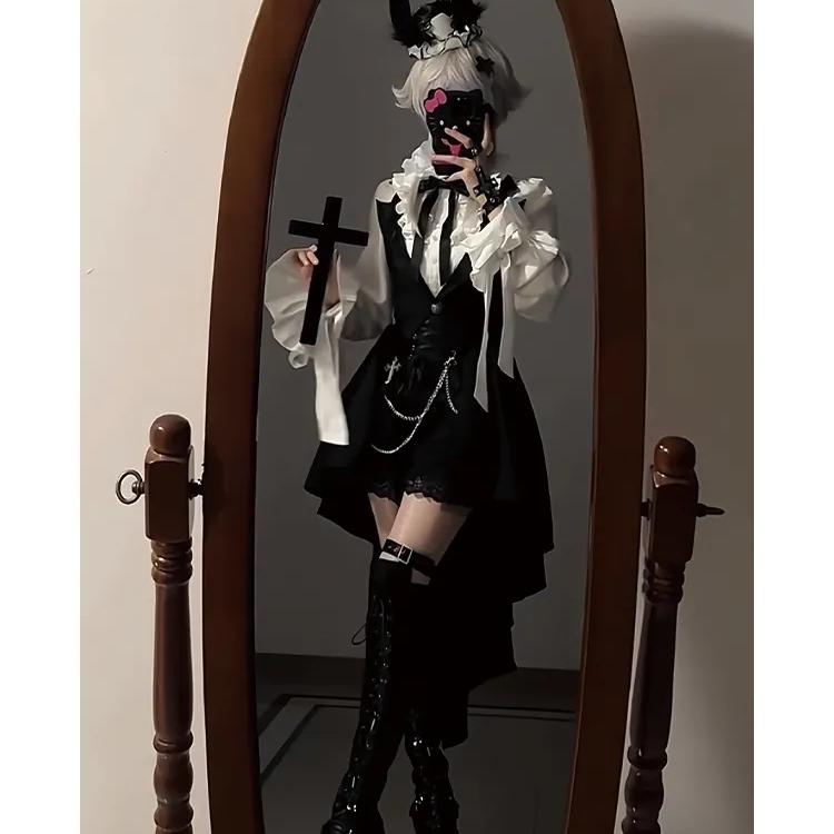 2025春季新款暗黑哥特风衬衫蕾丝短裤拖尾马甲lolita连衣裙三件套