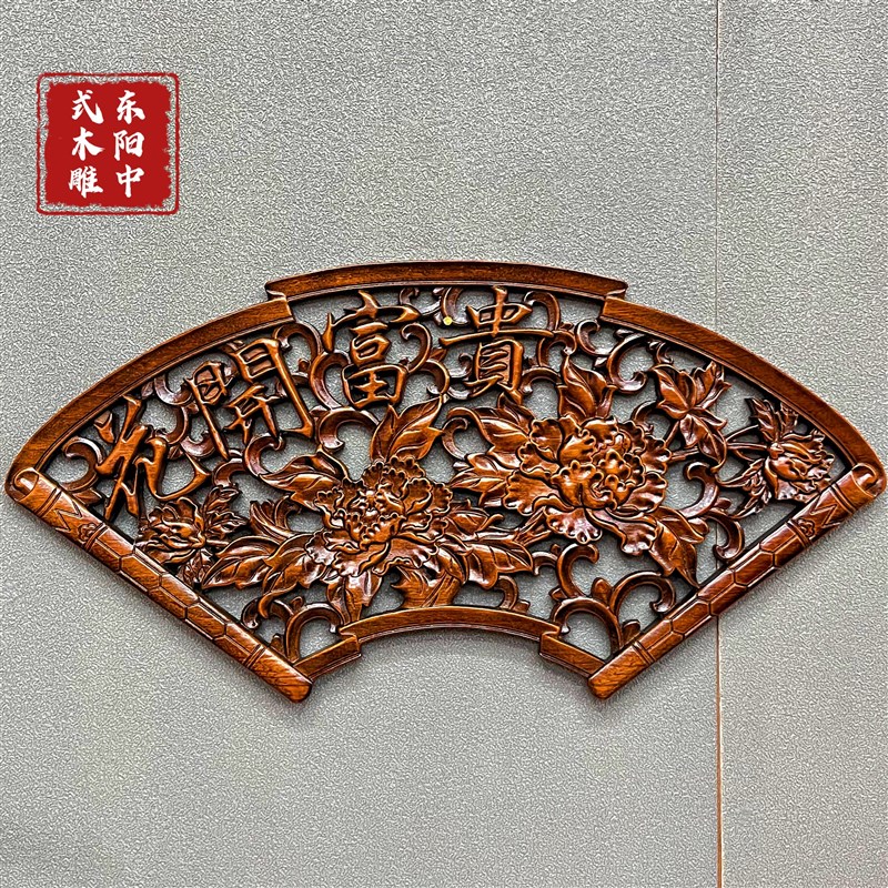 东阳香樟木雕刻镂空中式仿古装饰画福字挂件扇形客厅玄关壁饰壁画