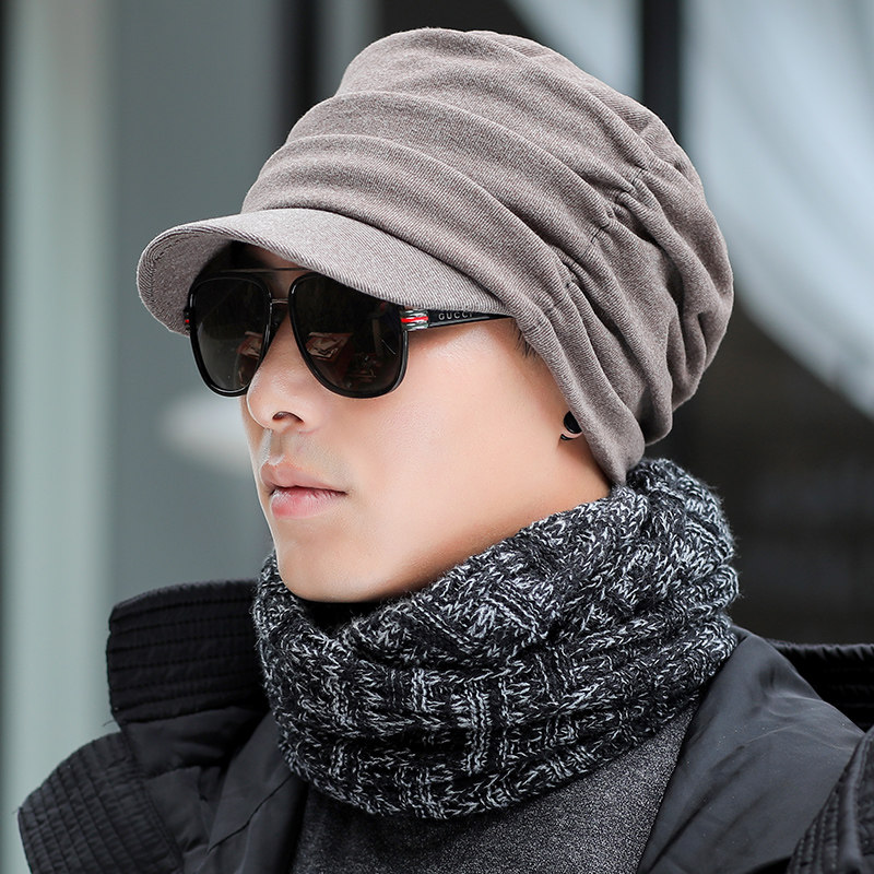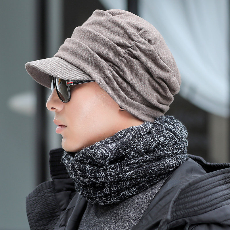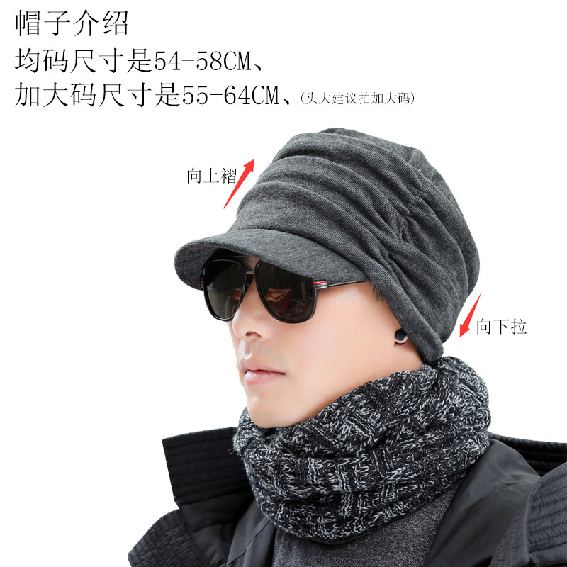 帽子男士时尚户外秋冬季短檐潮牌百搭褶皱鸭舌帽保暖休闲平顶帽