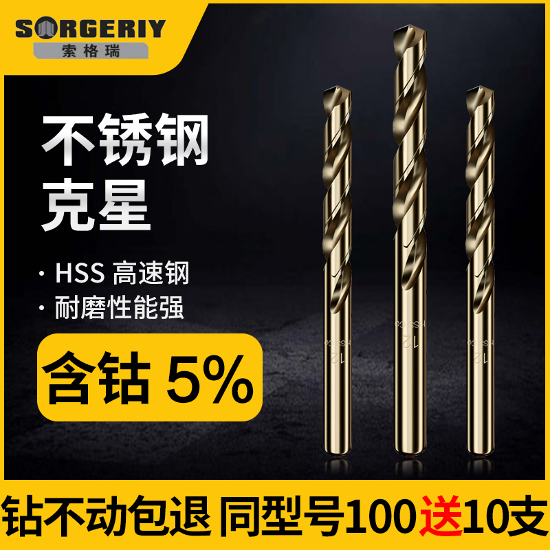 索格瑞麻花钻头含钴直柄钻钢铁高硬度不锈钢专用高速钢手电钻打孔