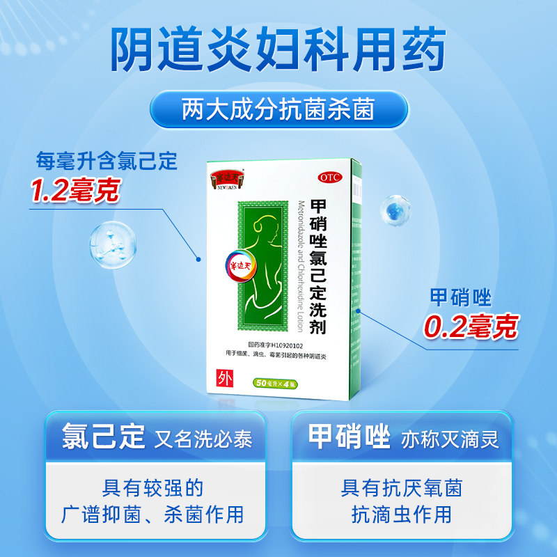 【自营】【半边天】甲硝唑氯己定洗剂0.02%0.12%*50ml*4瓶/盒阴道炎外阴瘙痒霉菌阴