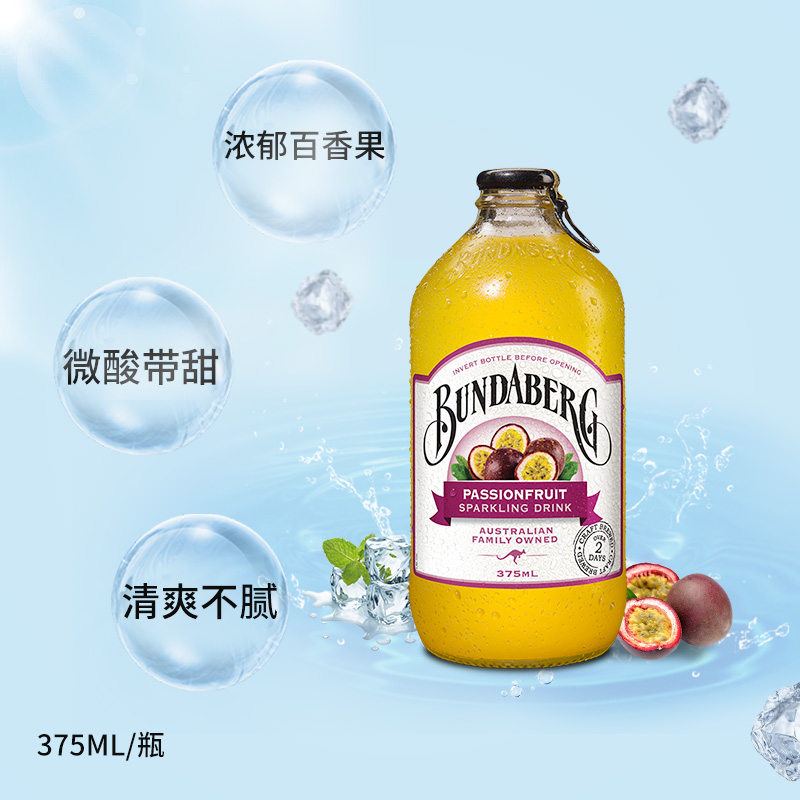 Bundaberg宾得宝澳洲进口百香果口味汽水375ml*1果汁气泡水饮料