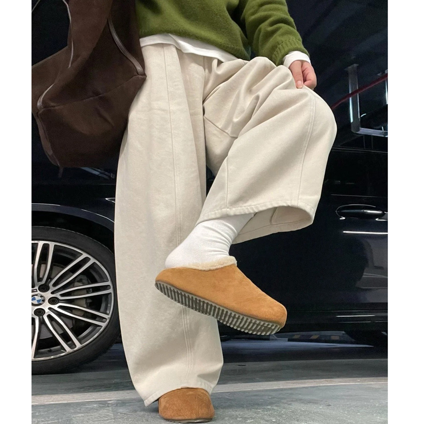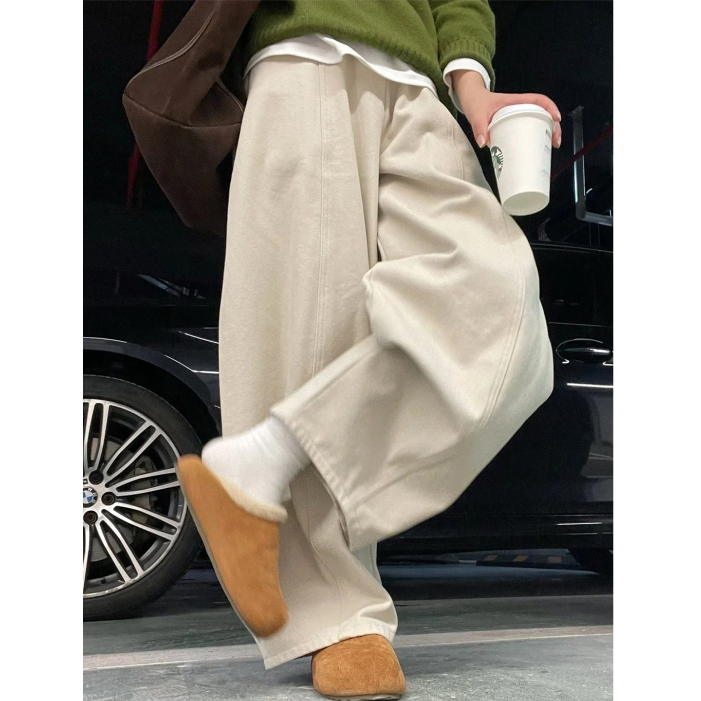 米白色休闲阔腿裤女大码