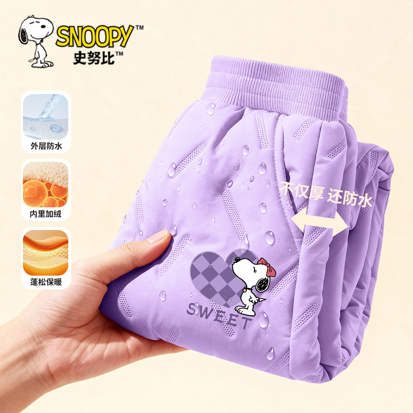 史努比女童裤子2026新款冬加厚保暖裤女孩羽绒裤粉色儿童加绒棉裤