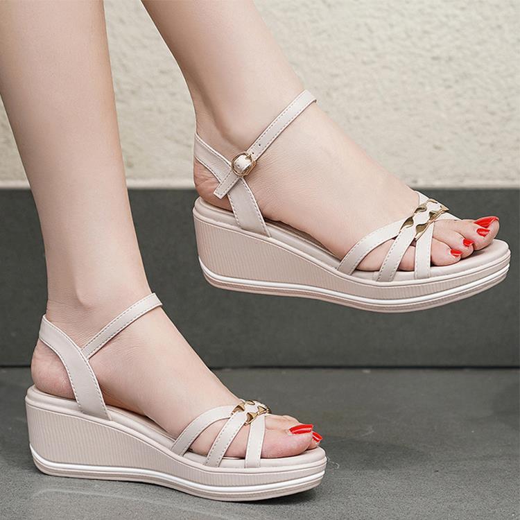 米兰【设计师】Caiem Kaiet⭐2025夏季新款一字带真皮坡跟凉鞋女
