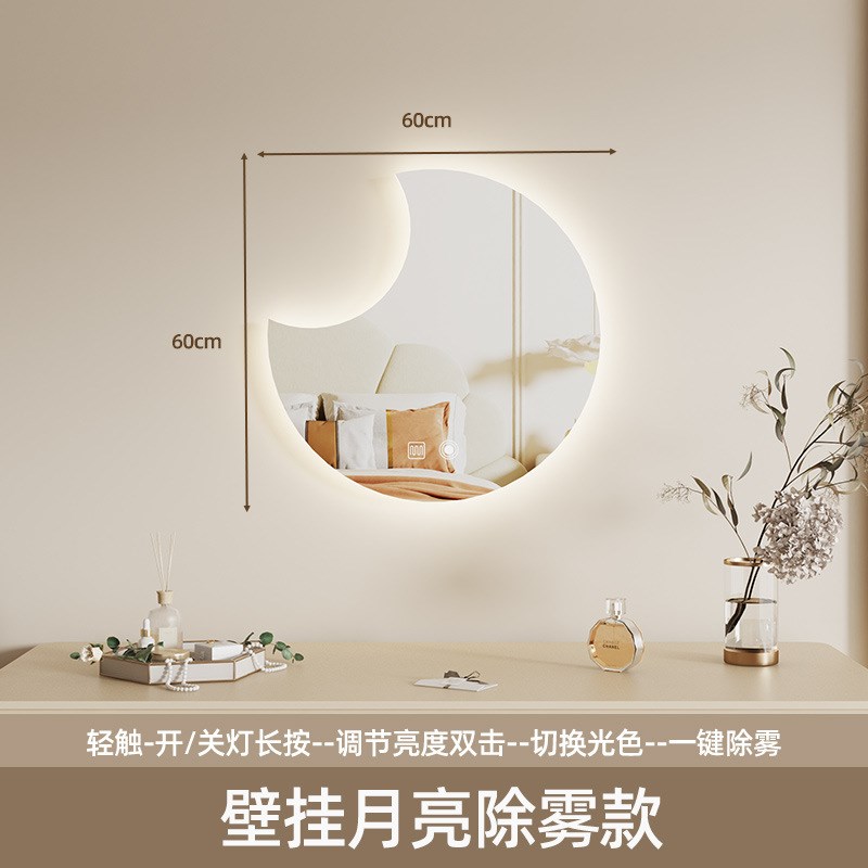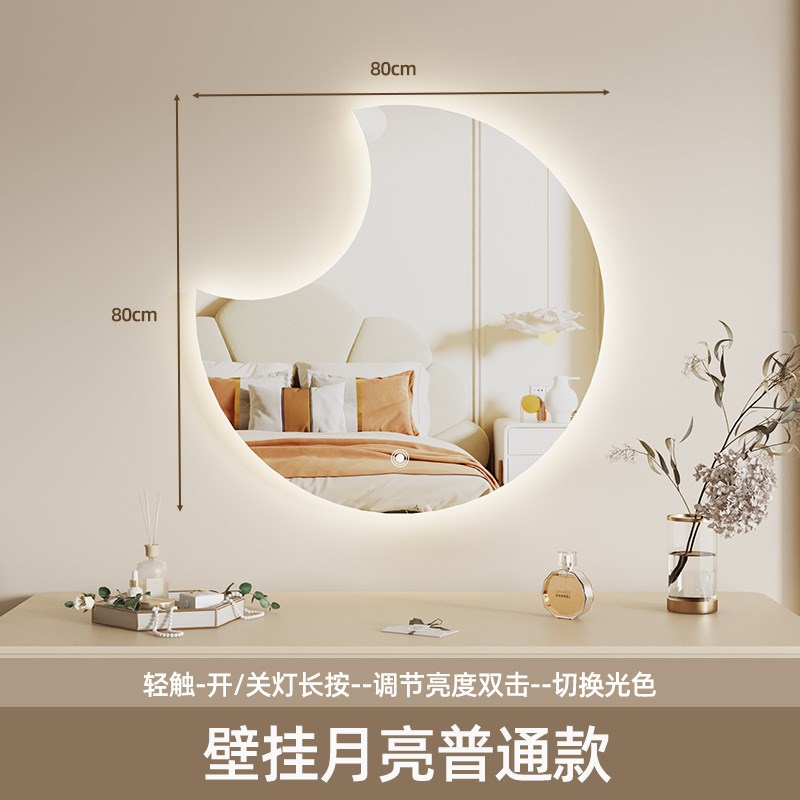 化妆镜台式桌面智能l大梳妆镜式主贴墙梳妆台镜子带灯