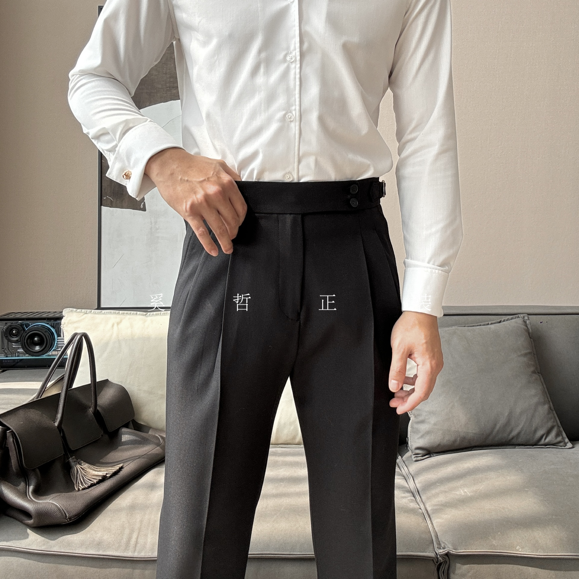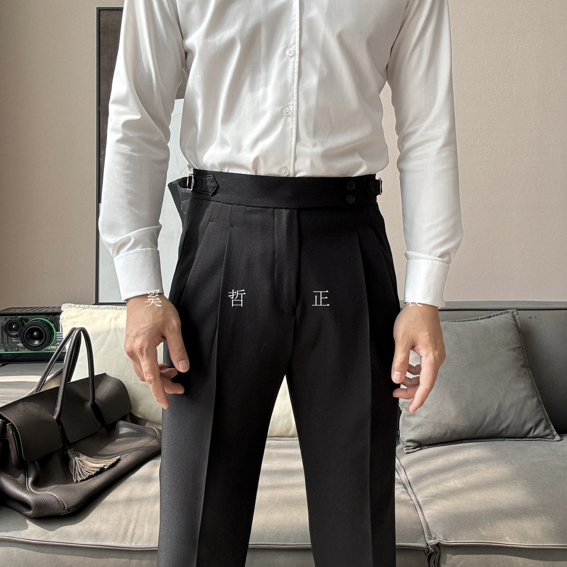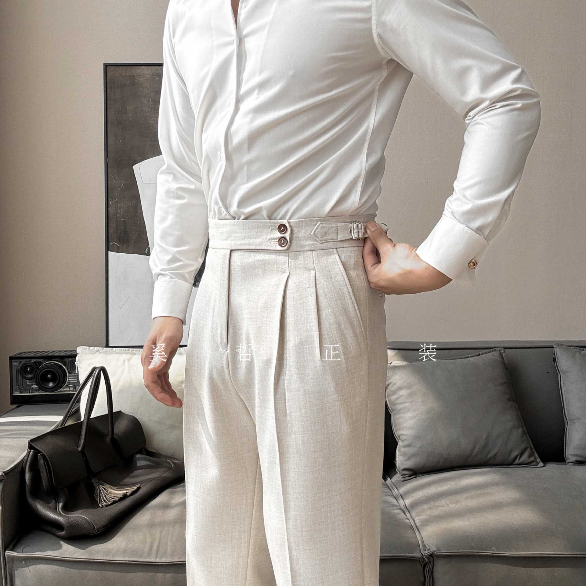 春夏季双褶西裤男直筒高腰那不勒斯休闲商务透气男士长裤931