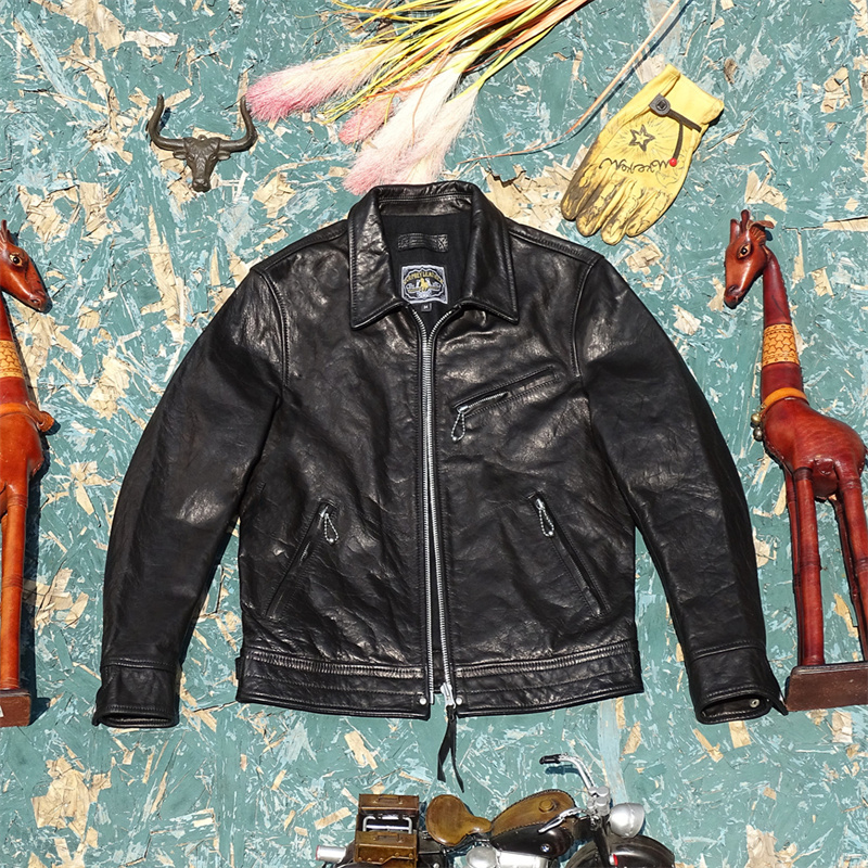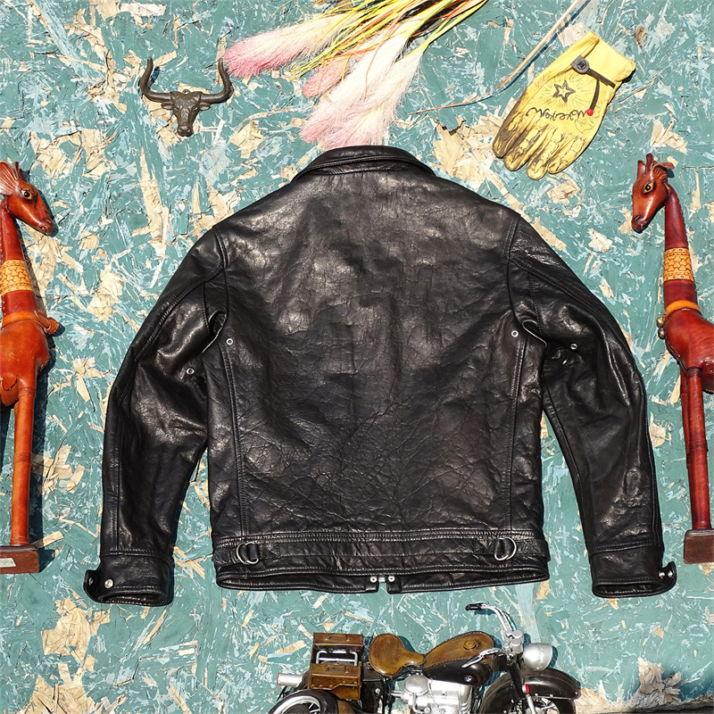 日本水波纹头层油蜡马皮真皮皮衣男穆赫兰道翻领款修身显瘦夹克