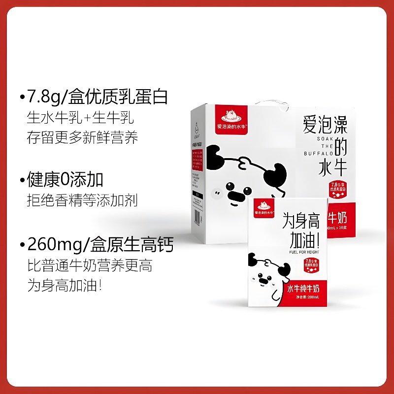 爱泡澡的水牛纯牛奶200ml*10盒学生儿童孕妇营养早餐奶高钙奶整箱