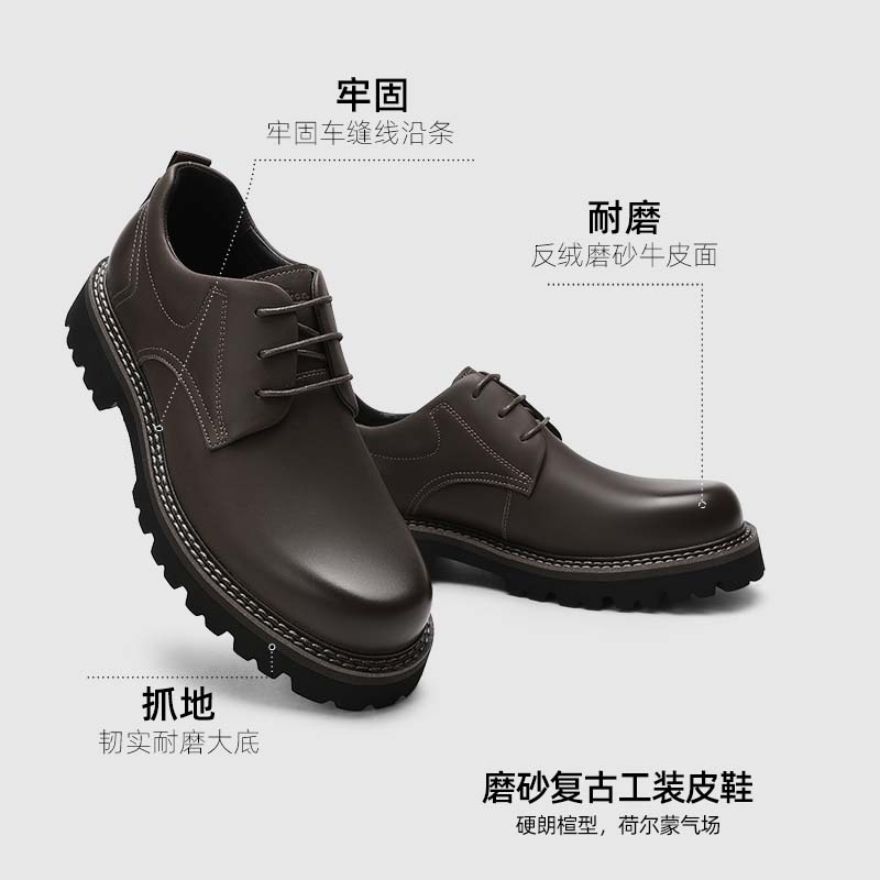 金利来男鞋新款户外低帮百搭休闲皮鞋男士磨砂透气牛皮工装鞋潮