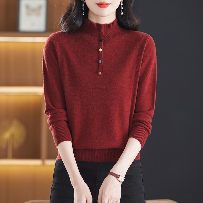 秋冬新款100%羊绒衫女半高领毛衣别致洋气妈妈气质内搭羊毛打底衫