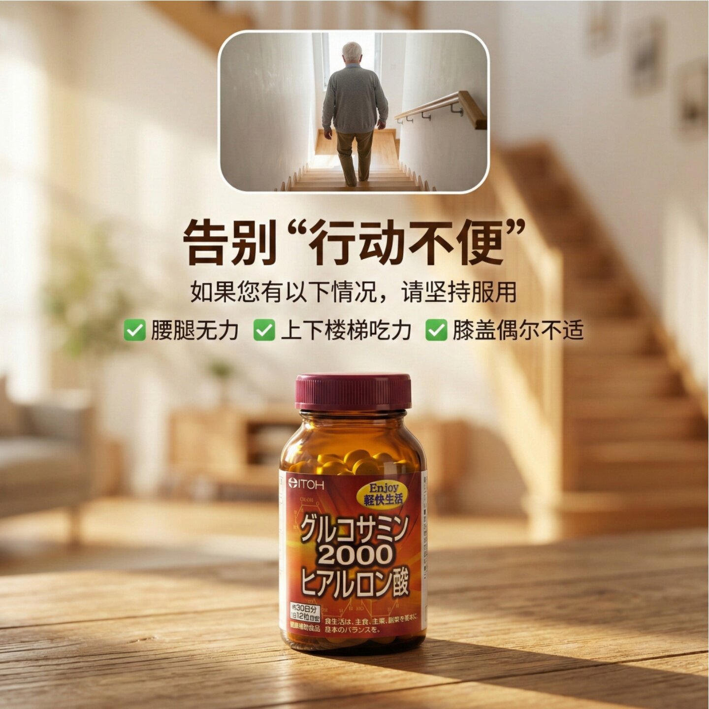 日本井藤汉方 ITOH葡萄糖胺 透明质酸 软骨素氨糖 膝关节营养健康