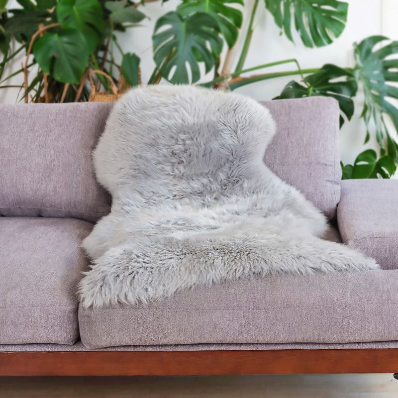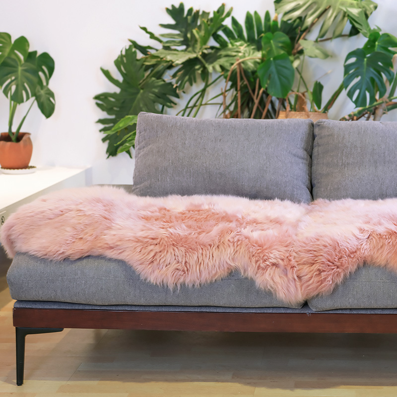 澳洲粉色灰色羊毛沙发垫 轻奢风纯色皮毛一体沙发坐垫整张羊皮垫