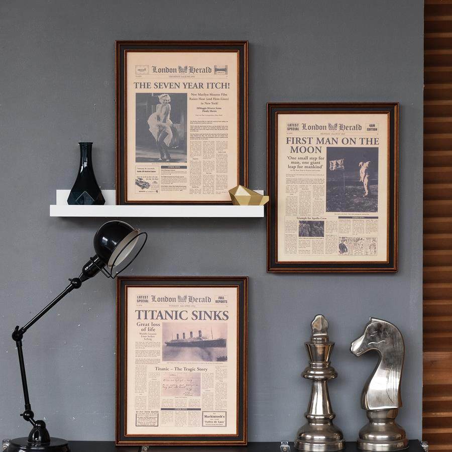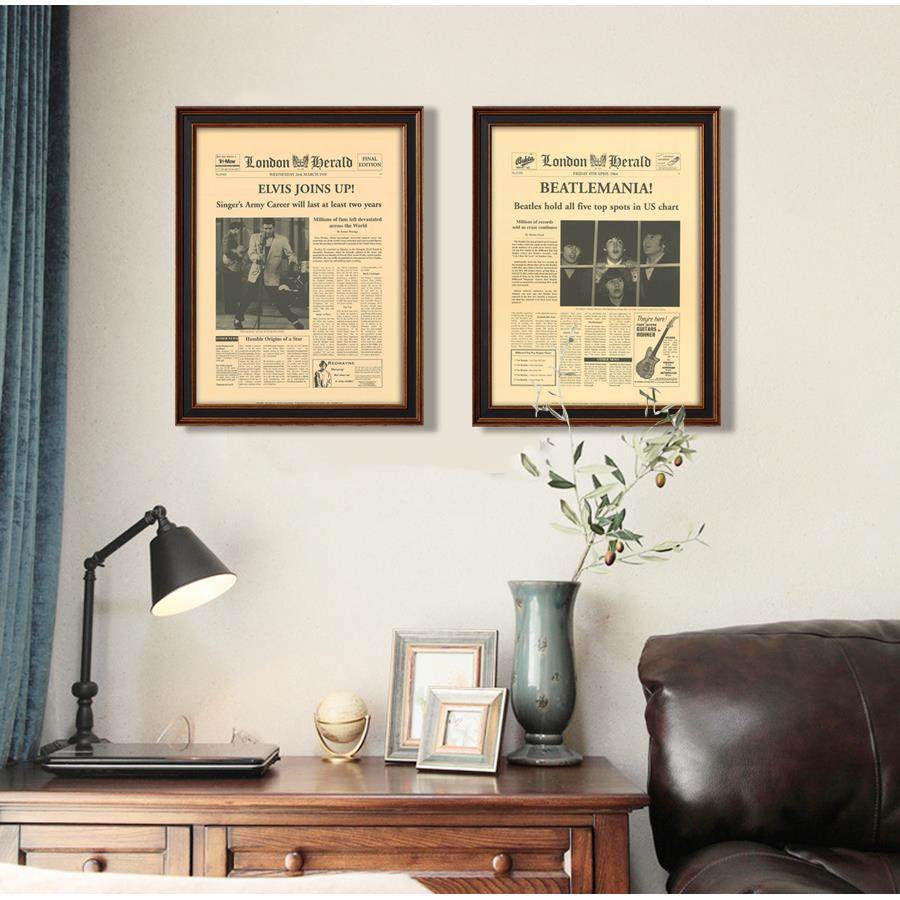 美式墙面装饰旧报纸挂画咖啡厅书房装饰画新中式玄关民宿店铺软装