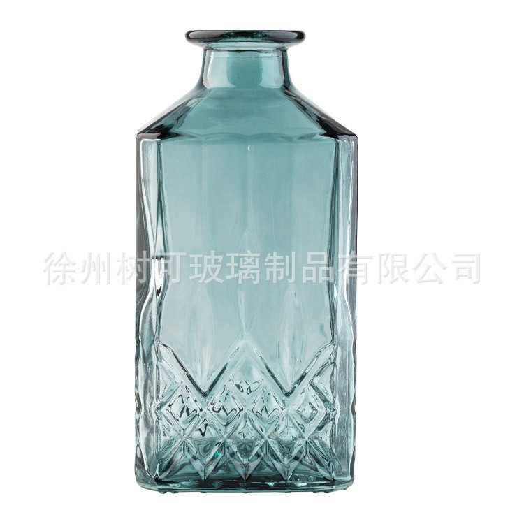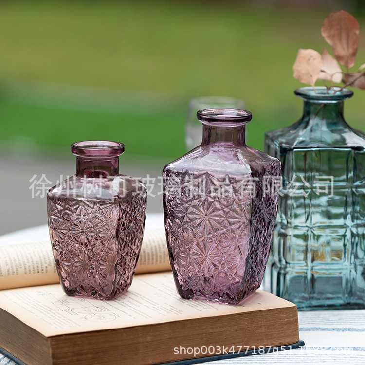新款直销马德里细口透明欧式复古浮雕玻璃花瓶客厅插花花器摆件节