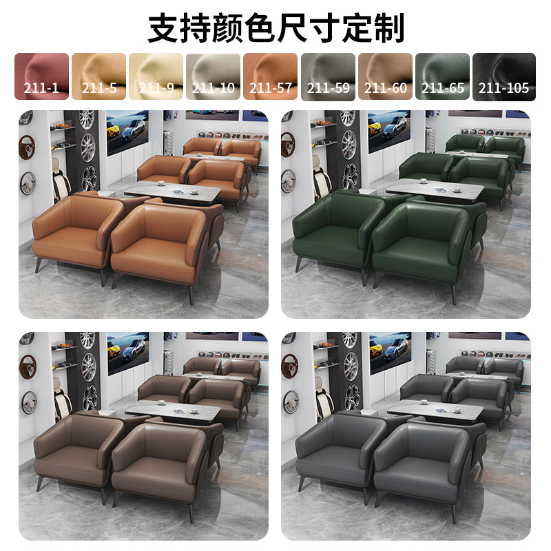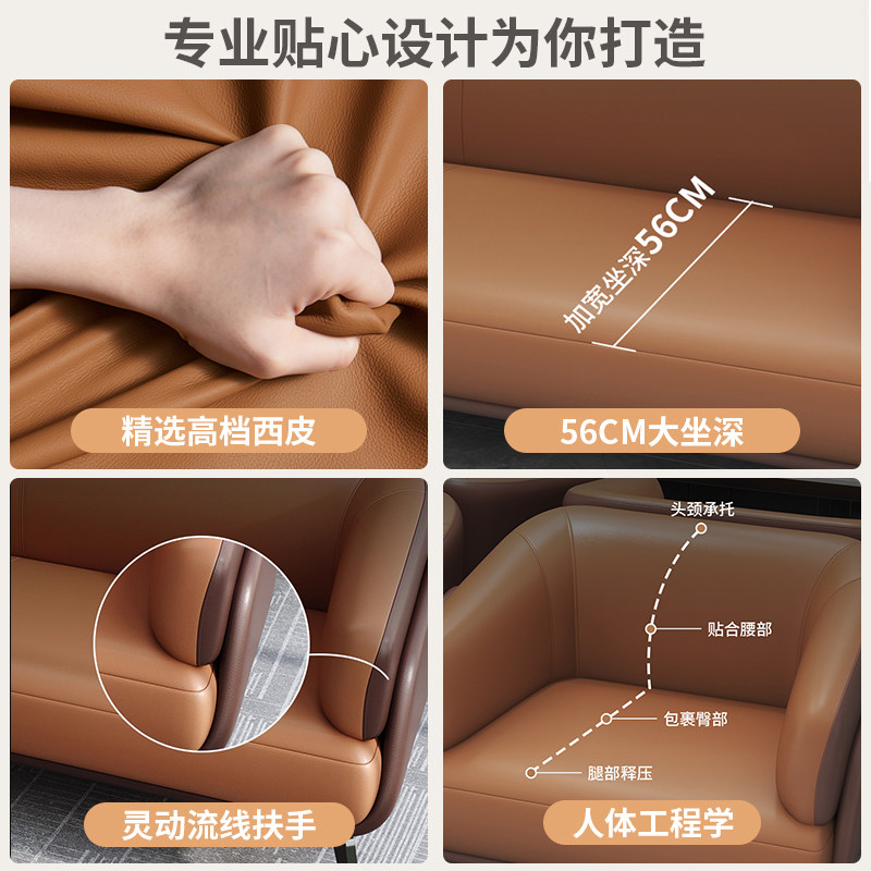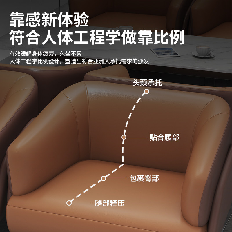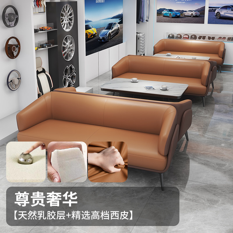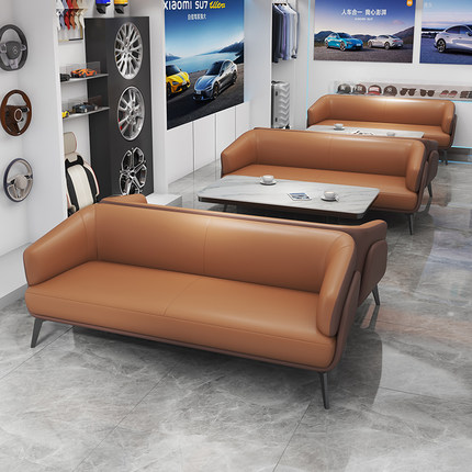皮艺沙发三人位浅棕色橙色写字楼工作室公寓小型汽车4S店沙发茶几