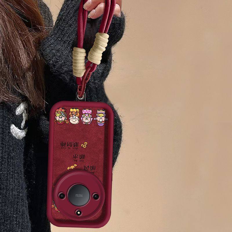 适用华为荣耀x40i手机壳DIO-AN00新年款honorx50i保护套CRT-ANOO软硅胶5G全包边防摔手绳文字喜庆红色外壳女